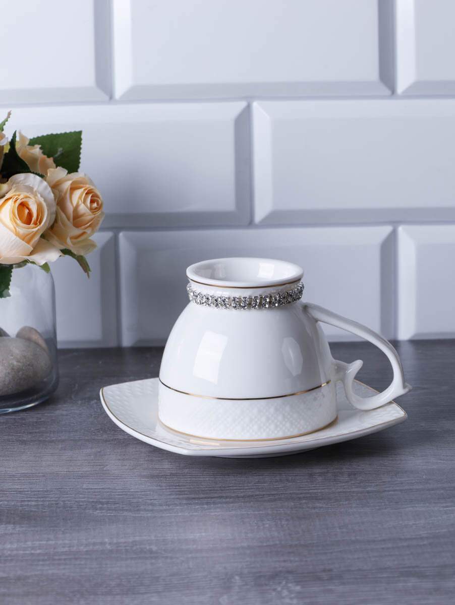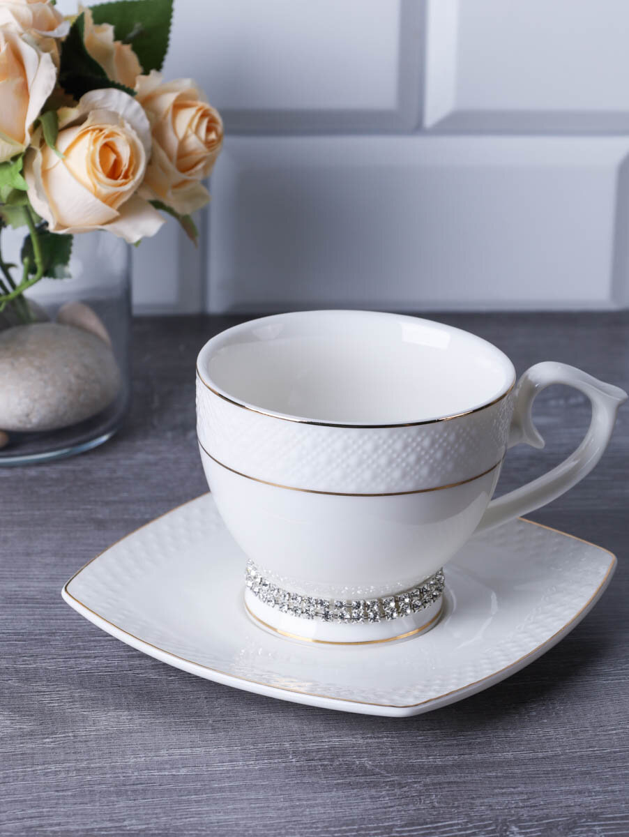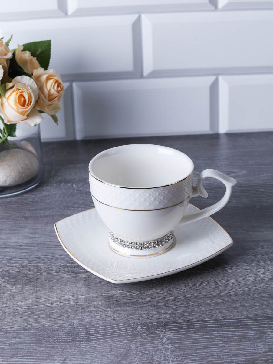 Чайная пара "Кларис" 250 мл, фарфор со стразами интересное: