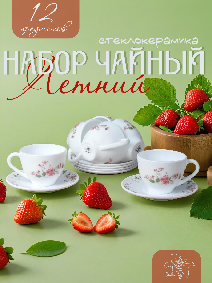 Купить Чайный набор на 6 персон «Летний» / 12 предметов в комплекте