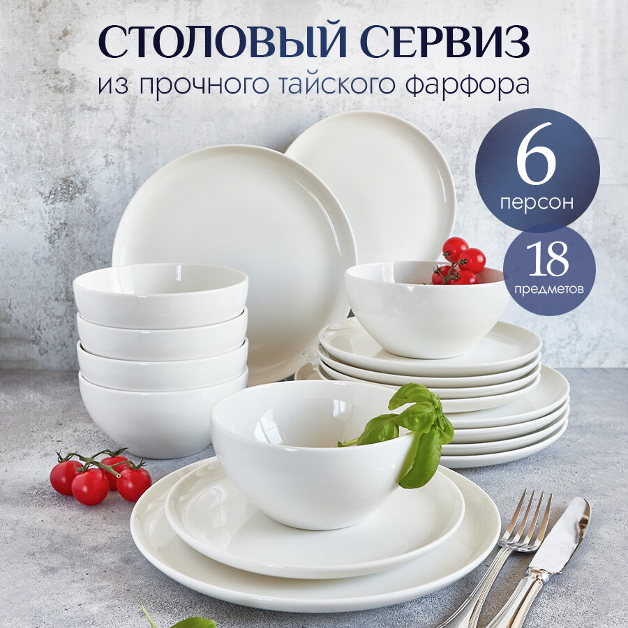Столовый сервиз на 6 персон Noble, фарфор, 18 элементов, белый интересное: