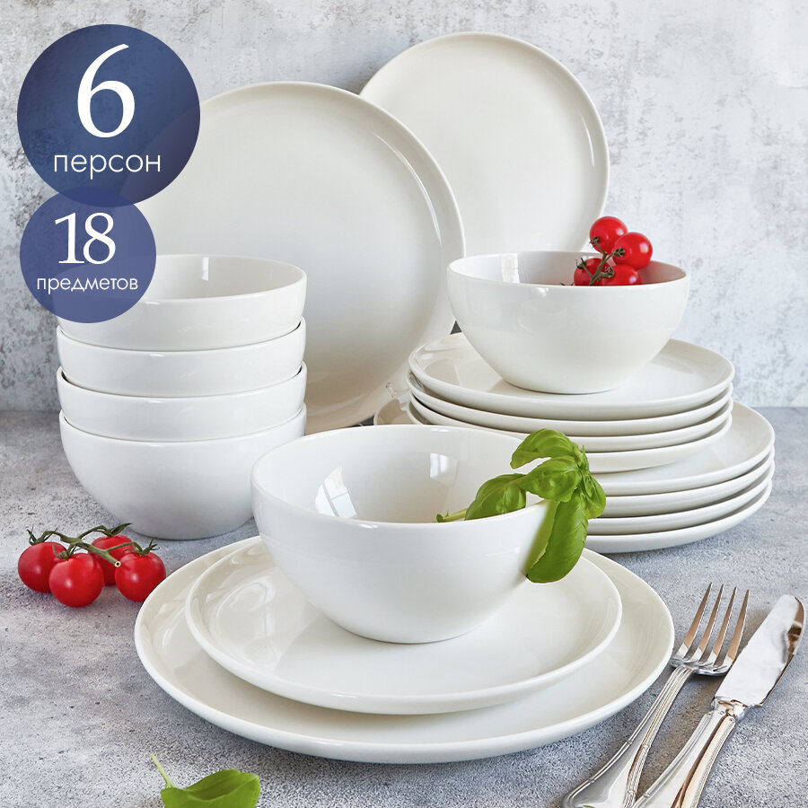 Купить Столовый сервиз на 6 персон Noble, фарфор, 18 элементов, белый