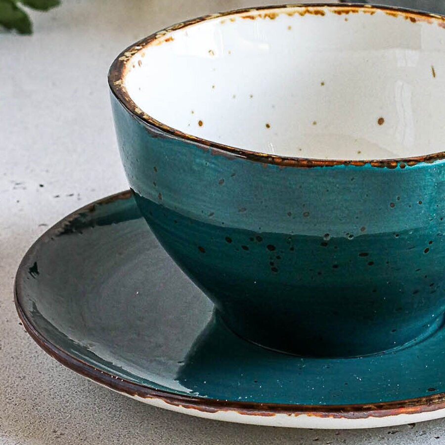 Чайная пара Green Sea, чайный сервиз, большая кружка для чая и кофе, чашка с блюдцем, 375 мл, 2 пары интересное: