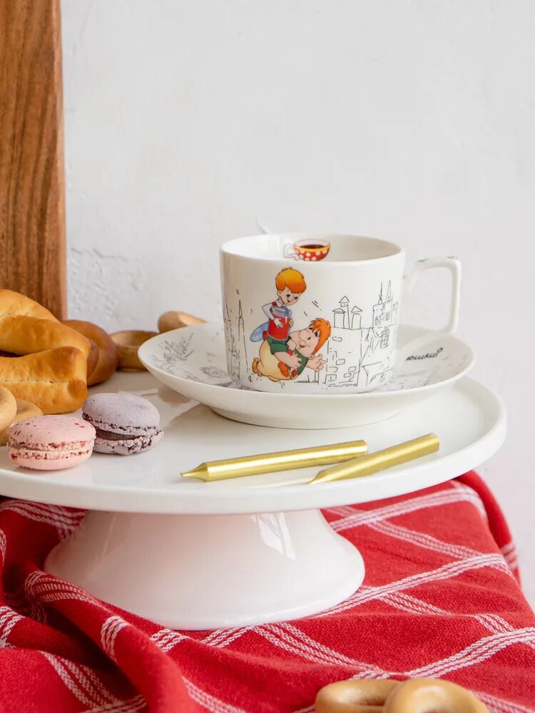 Чайная кофейная пара фарфор 220 мл. в подарочной упаковке "Малыш и Карлсон" ручка квадрат чашка с блюдцем