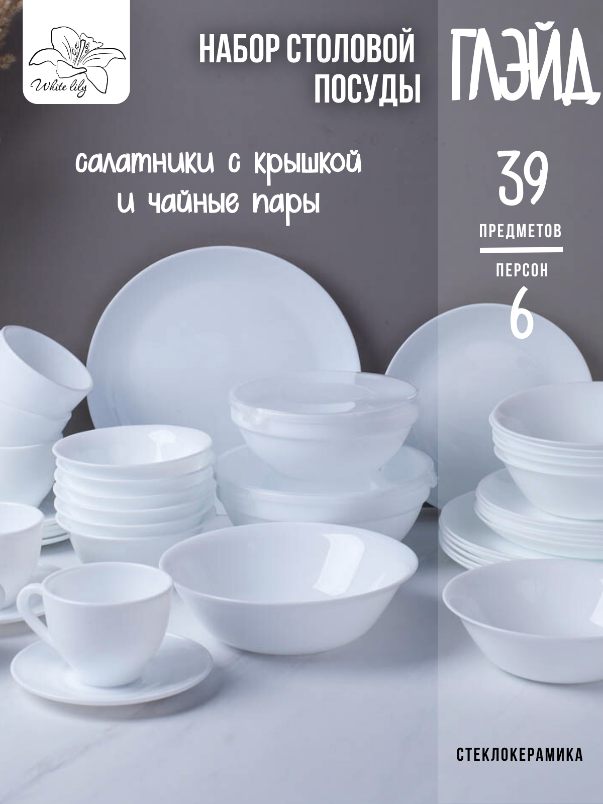 Столовый набор посуды "Глэйд" с салатниками - 39 предметов / 6 персон интересное: