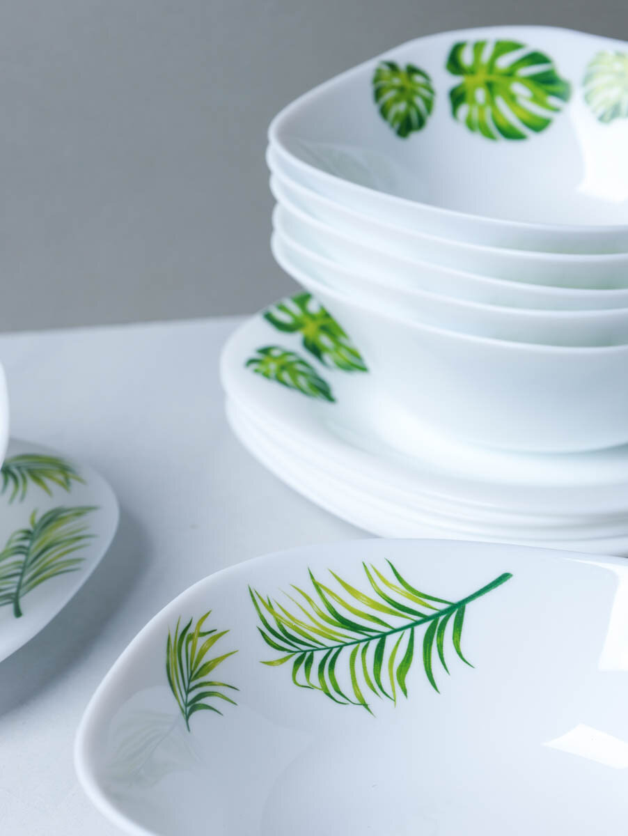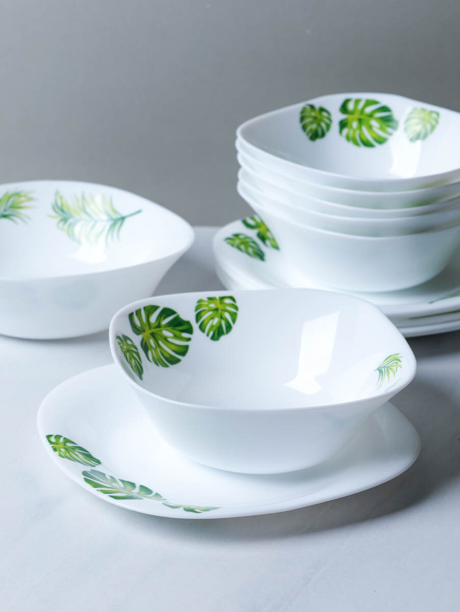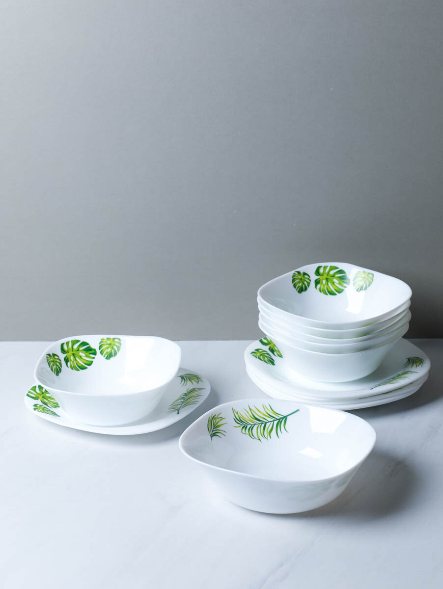Купить Столовый набор посуды 6 персон Монстера / набор тарелок квадратные 13 предметов