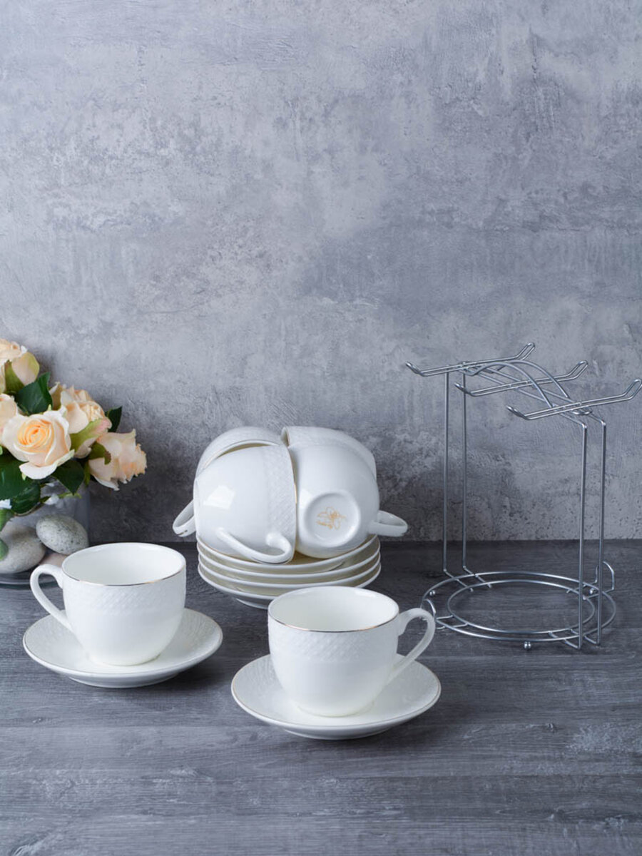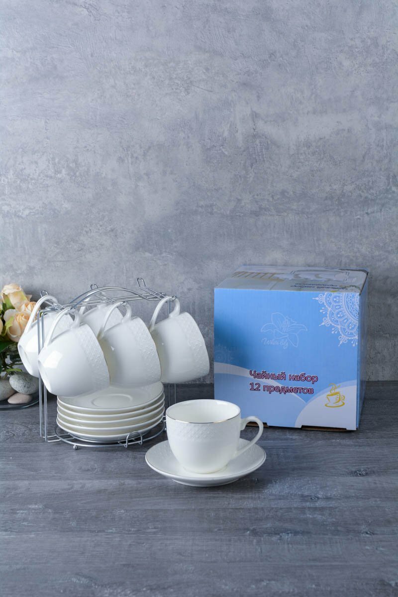 Купить Чайный набор 12 предметов "Эстет" 250 мл, фарфор на подставке