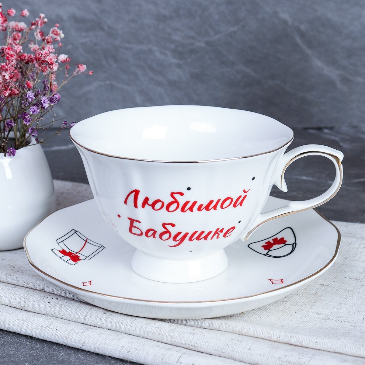 Чайная пара подарочная "Любимой бабушке" 250 мл фарфор интересное: