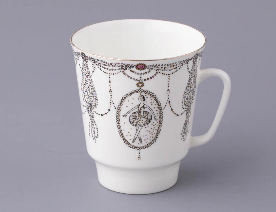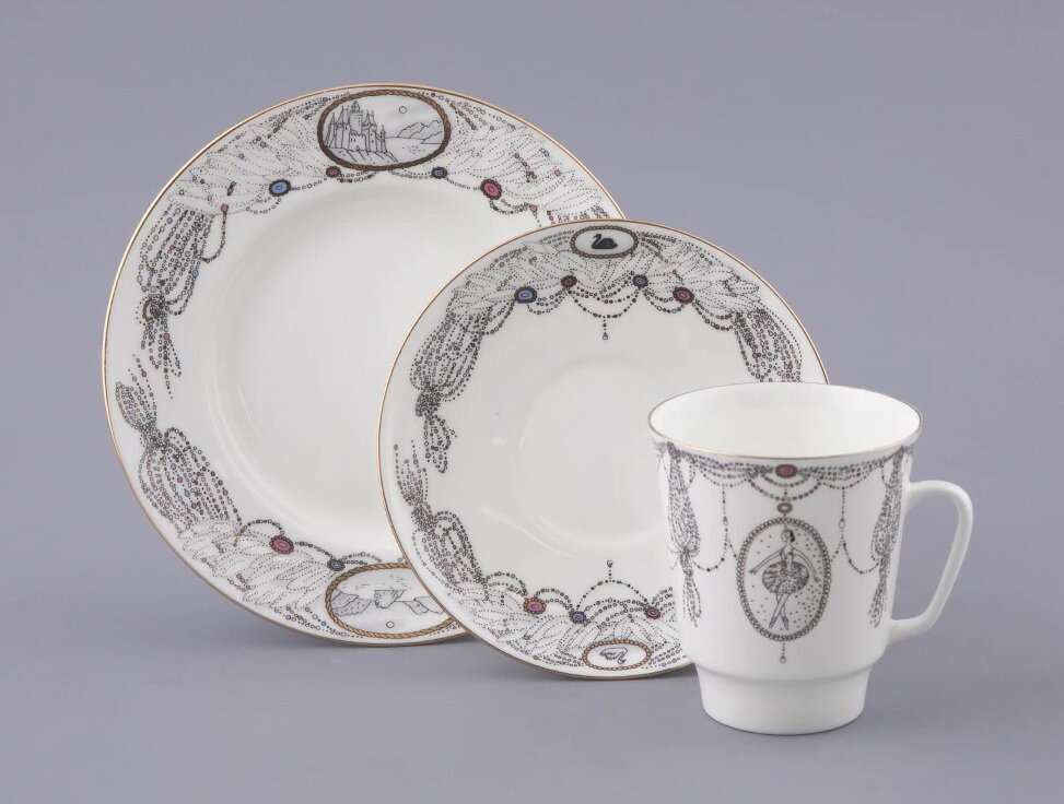 Кофейный набор 165 мл. Форма "Майская", рисунок "Балет. Лебединое озеро". Костяной фарфор. 3 предмета. Кофейная пара с десертной тарелкой. Императорский фарфоровый завод ИФЗ ЛФЗ