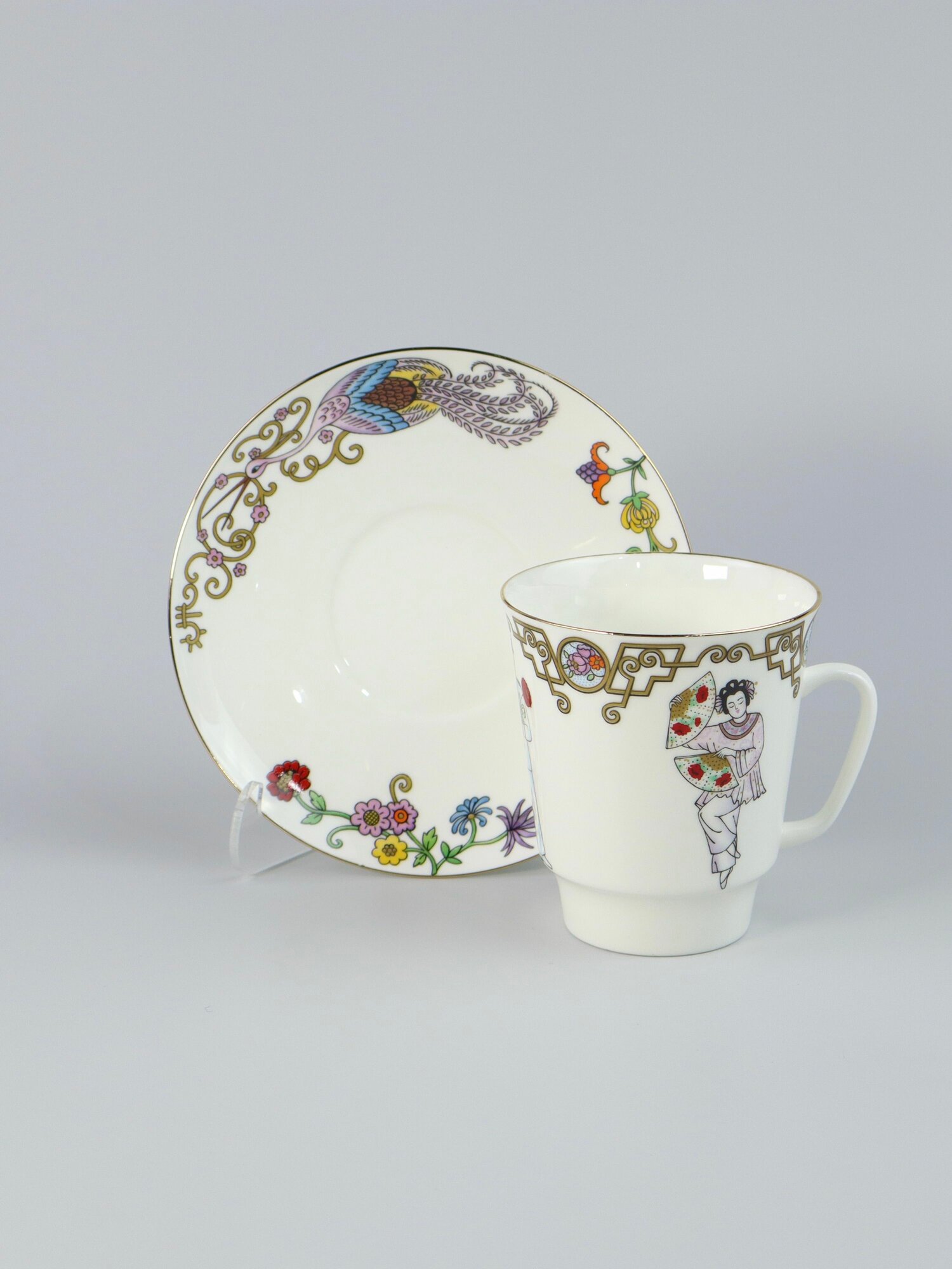 Кофейный набор 165 мл. Форма "Майская", рисунок "Балет. Лебединое озеро". Костяной фарфор. 3 предмета. Кофейная пара с десертной тарелкой. Императорский фарфоровый завод ИФЗ ЛФЗ