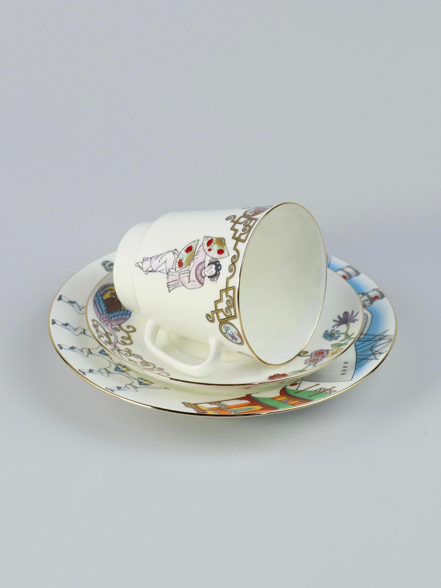 Кофейный набор 165 мл. Форма "Майская", рисунок "Балет. Жизель". Костяной фарфор. 3 предмета. Кофейная пара с десертной тарелкой. Императорский фарфоровый завод ИФЗ ЛФЗ