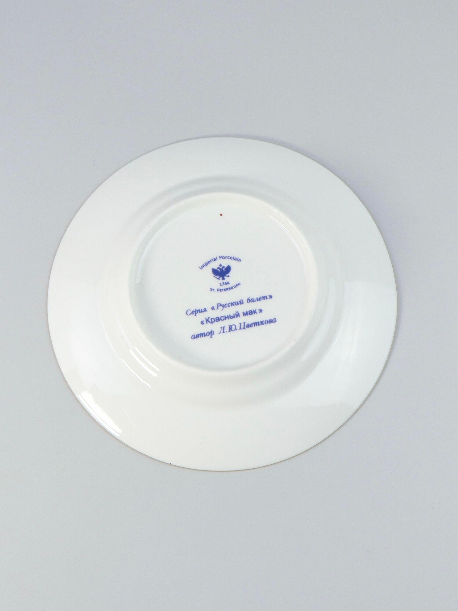 Купить Набор кофейный 165 мл. Форма "Майская", рисунок "Балет. Красный мак". Костяной фарфор. Кофейная пара и десертная тарелка. Императорский фарфоровый завод ИФЗ ЛФЗ