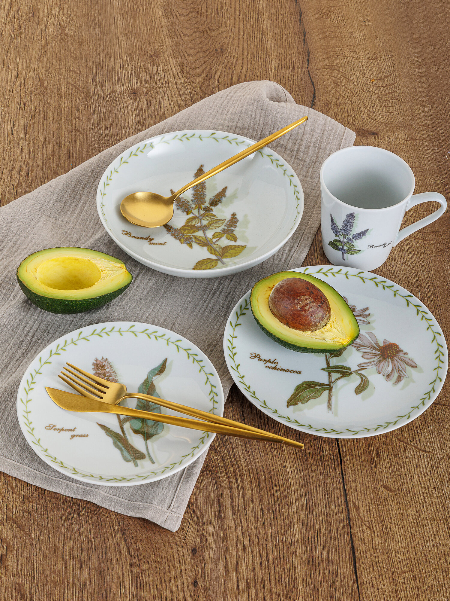 Купить Набор посуды столовой на 6 персон с кружками, 24 предмета "Гербарий", сервиз обеденный фарфоровый