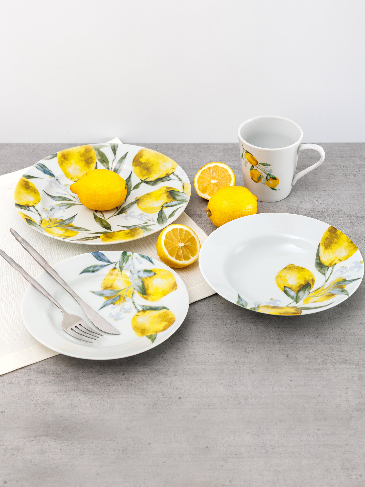 Купить Набор посуды столовой на 6 персон с кружками, 24 предмета "Лимоны", сервиз обеденный фарфоровый