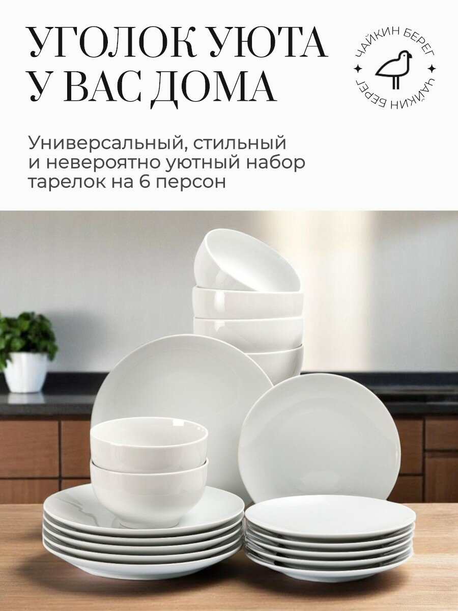 СохранитьБелый набор посуды столовой на 6 персон, 18 предметов "Универсальный", фарфор, сервиз обеденный интересное: