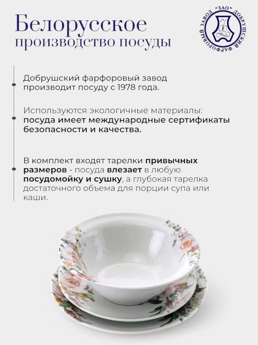 Купить Набор тарелок на 12 персон из фарфора, 36 предметов, коллекция "Розы"