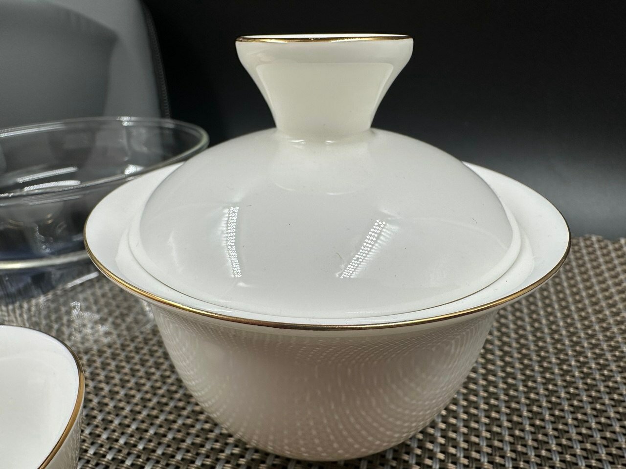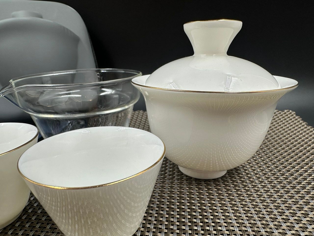 Набор дорожный для чайной церемонии «Белоснежный фарфор» (白瓷旅行包) с золотым оформлением, 6 предметов интересное: