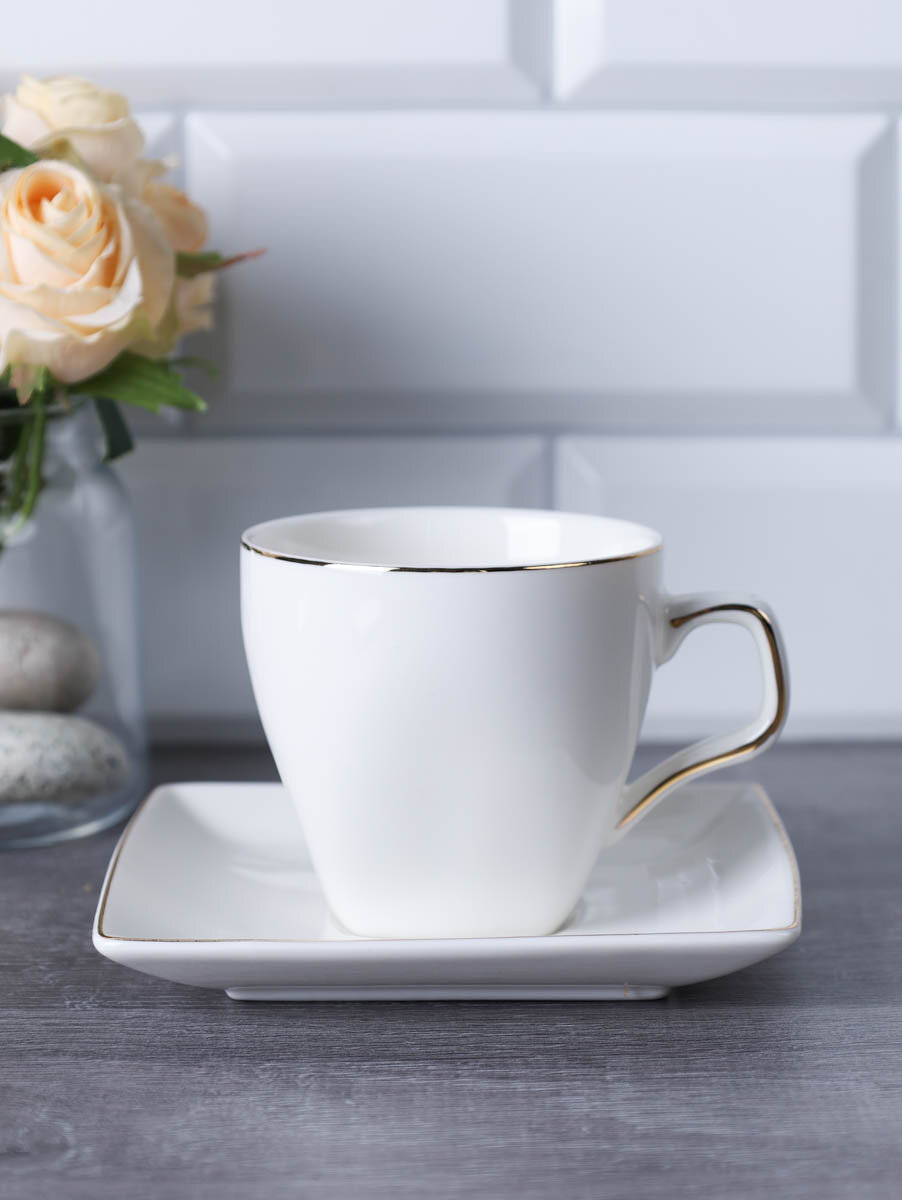 Чайная пара "Квадро" 220 мл, квадратная форма, фарфор в подарочной коробке