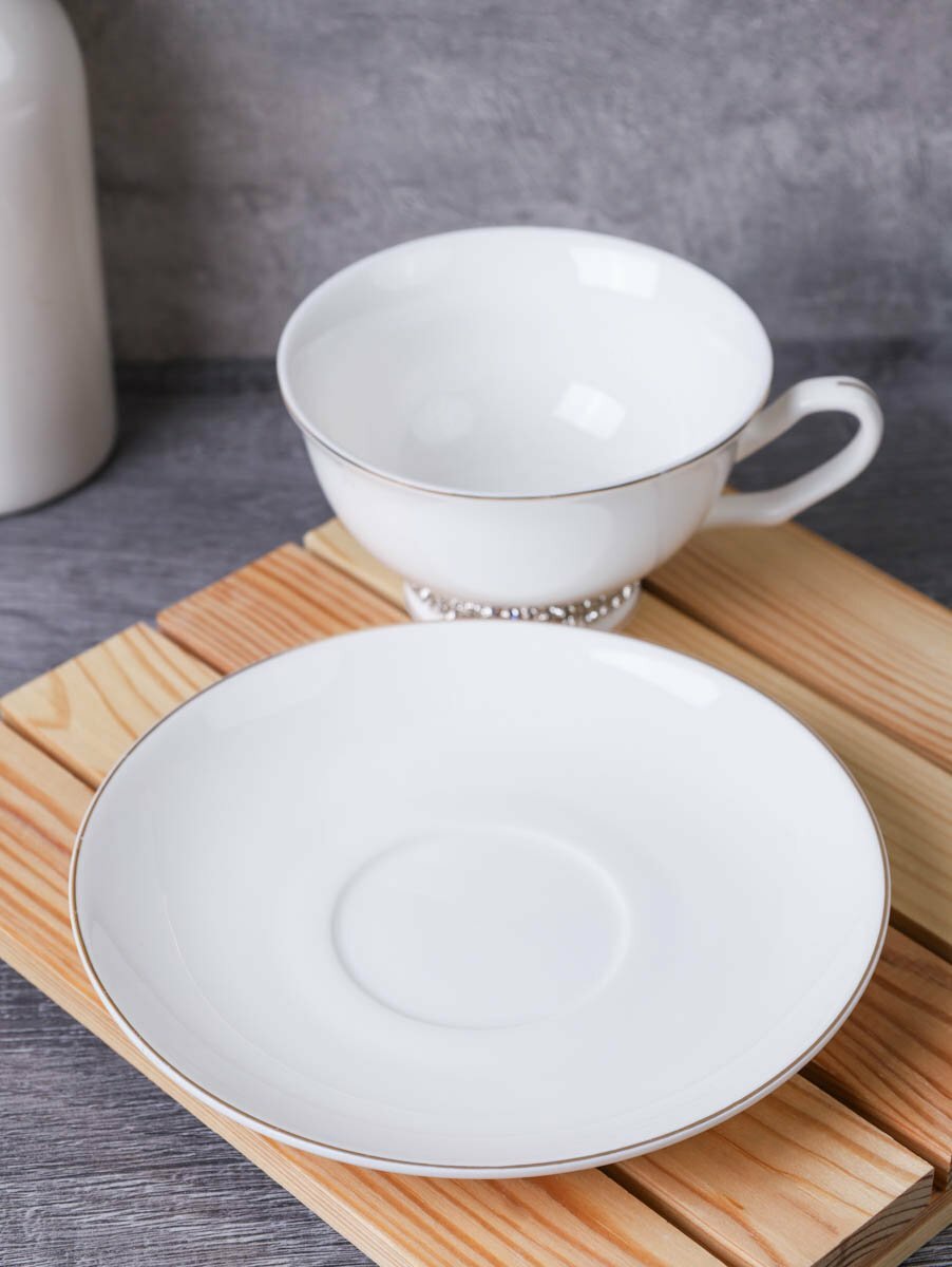 Чайная пара "Классика" 230 мл с браслетом на ножке, фарфор, в подарочной коробке интересное: