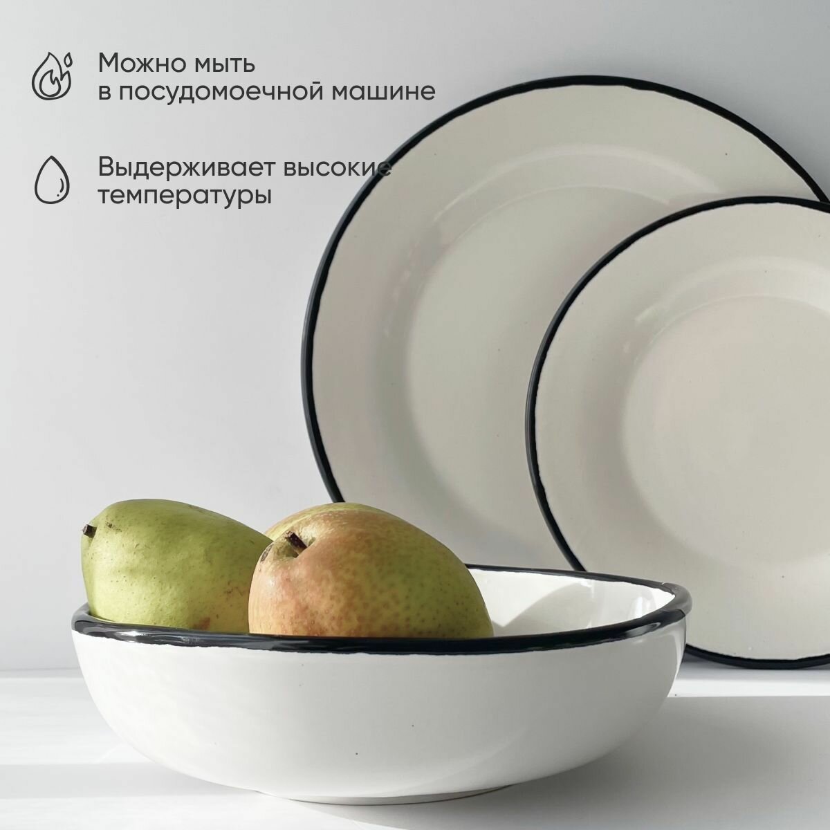 Купить Набор посуды 4 предмета, набор тарелок Chasha с черной каймой