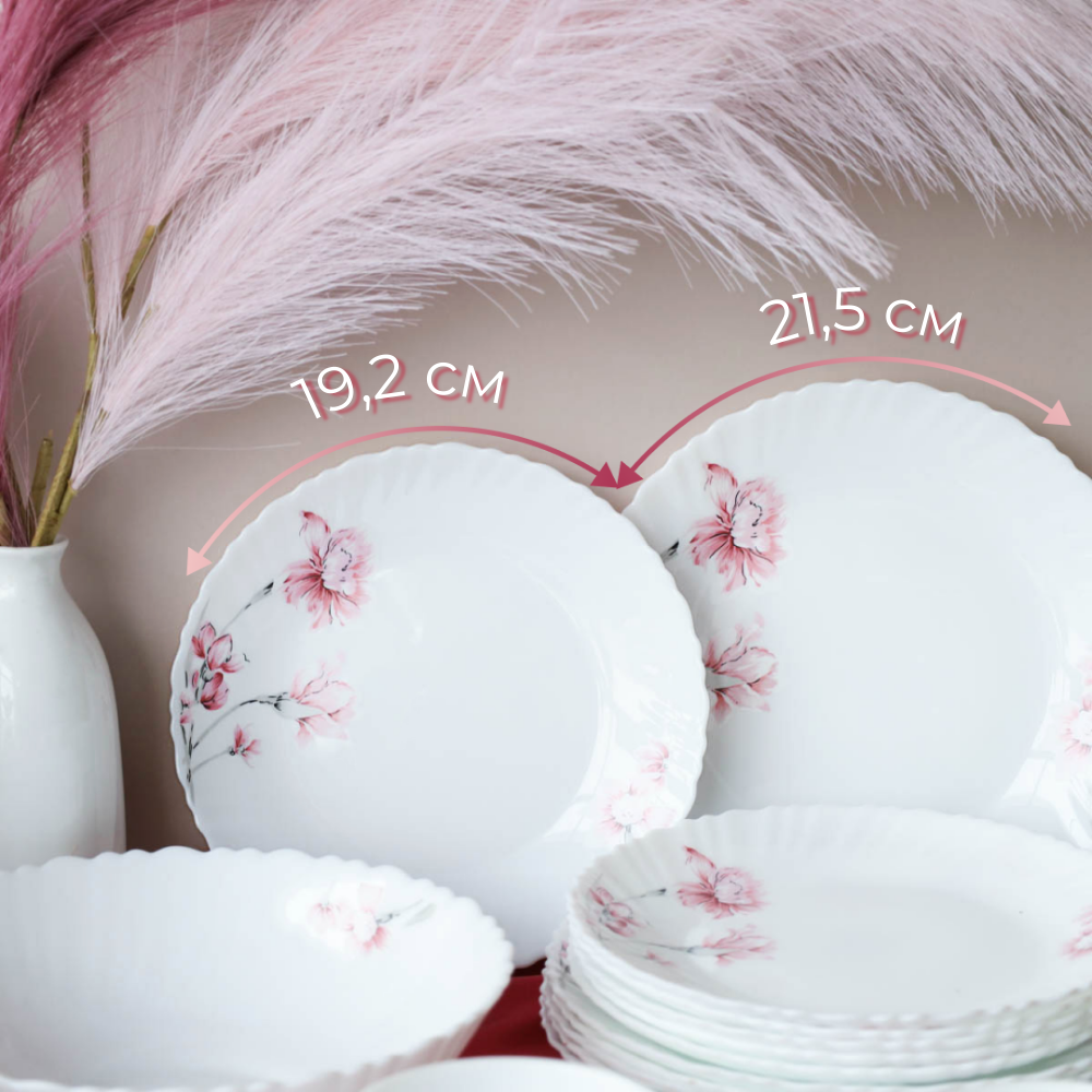 Столовый сервиз WHITE LILY "Садовая гвоздика", 19 предметов, 6 персон, стеклокерамика