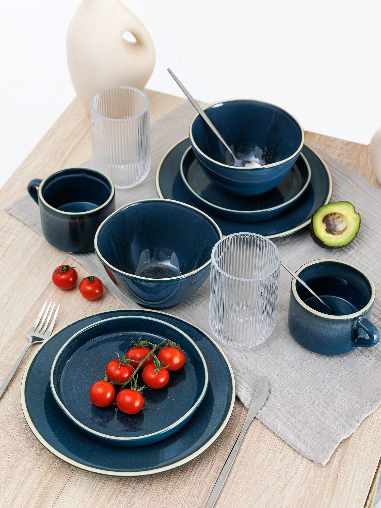 Набор посуды столовой на 6 персон с кружками, 24 предмета "Блу Реаттиво", фарфор, сервиз обеденный, цвет синий