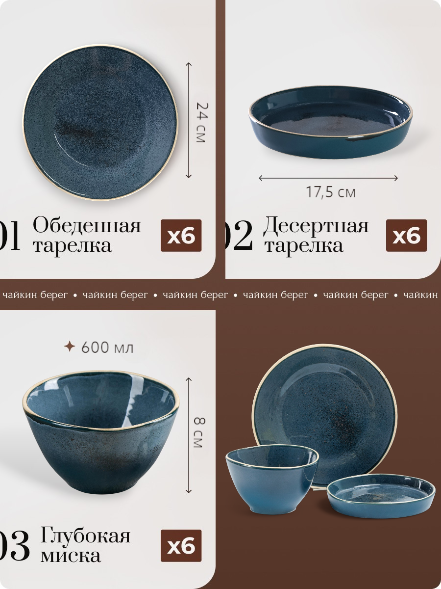 СохранитьСервиз обеденный на 6 персон, 18 предметов "Бордер", фарфор, набор посуды столовой Блу Реаттиво интересное: