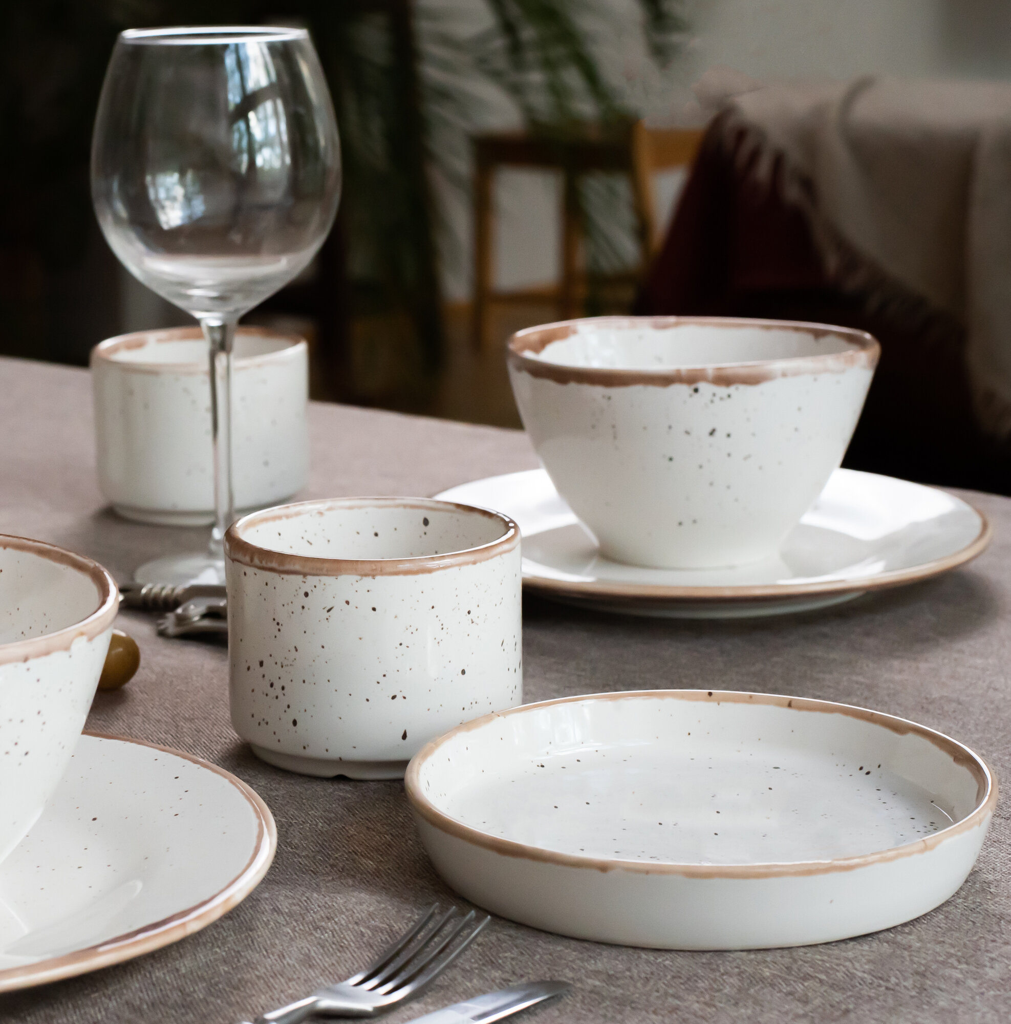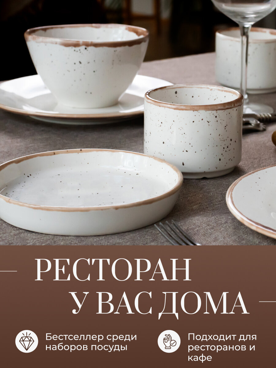 Набор посуды столовой на 6 персон с кружками, 24 предмета "Бордер", фарфор, сервиз обеденный Трамантано