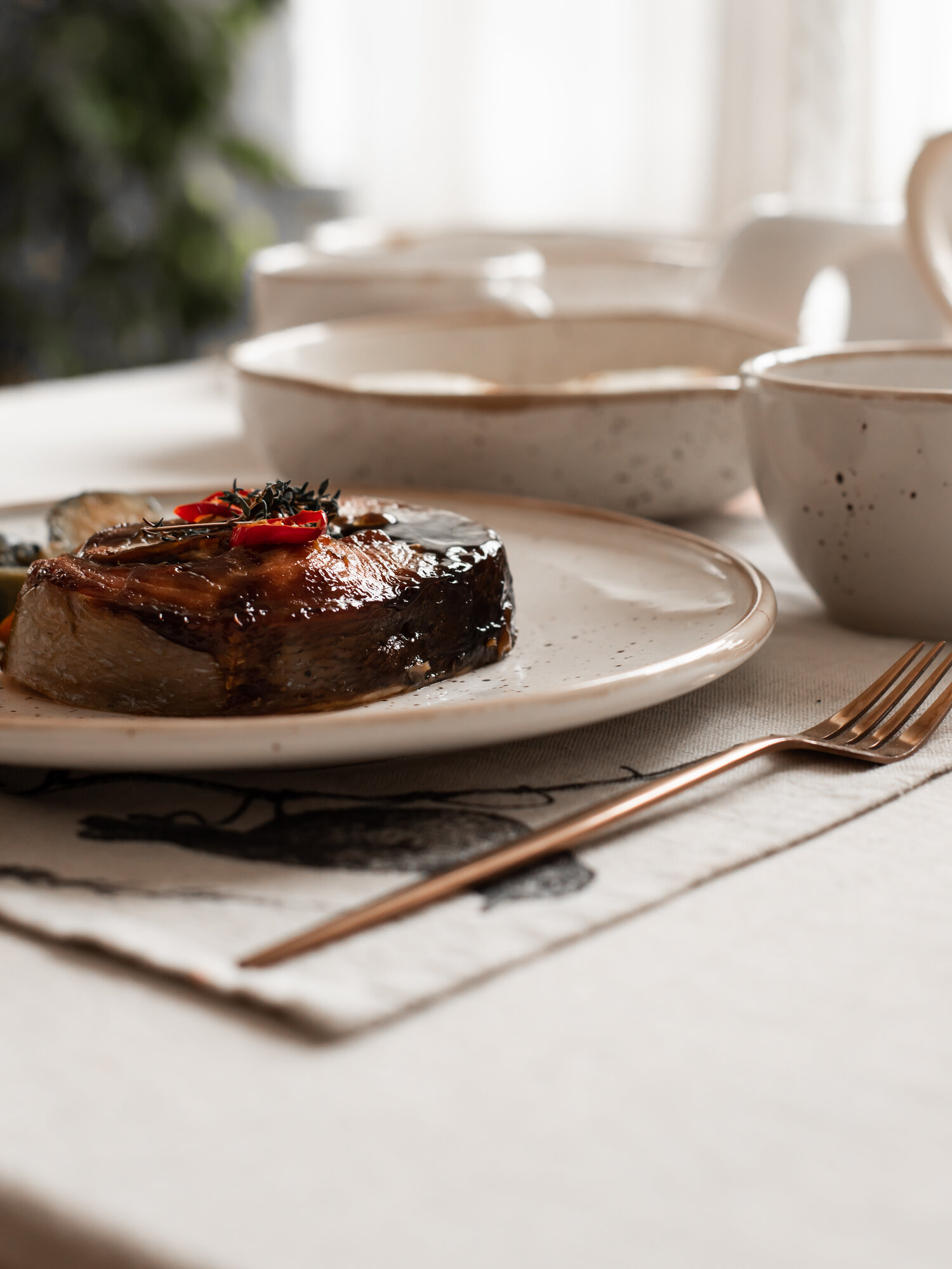 Набор посуды столовой на 4 персоны с кружками, 12 предметов "Флоу", сервиз обеденный Эрбосо Реаттиво