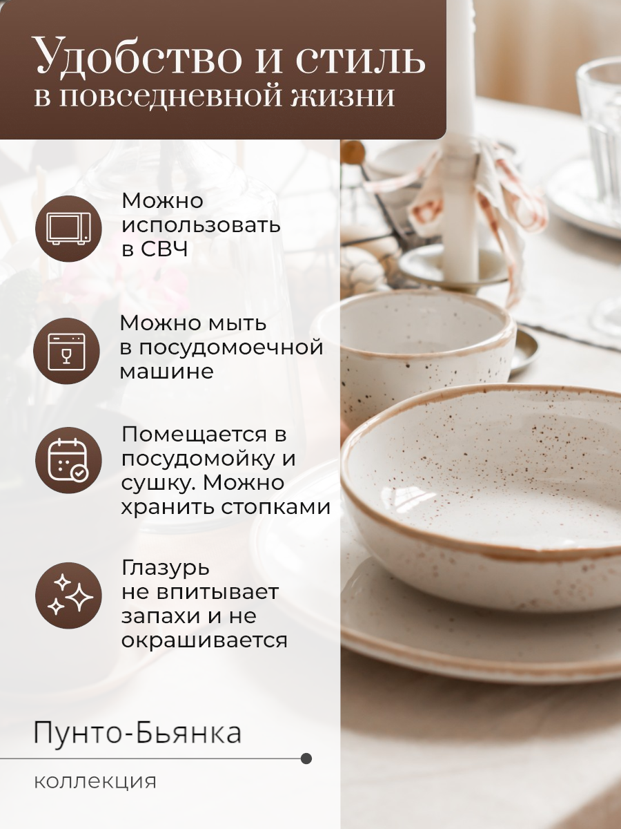 Сервиз обеденный на 6 персон, 18 предметов "Бордер", фарфор, столовый набор посуды Пунто-Бьянка
