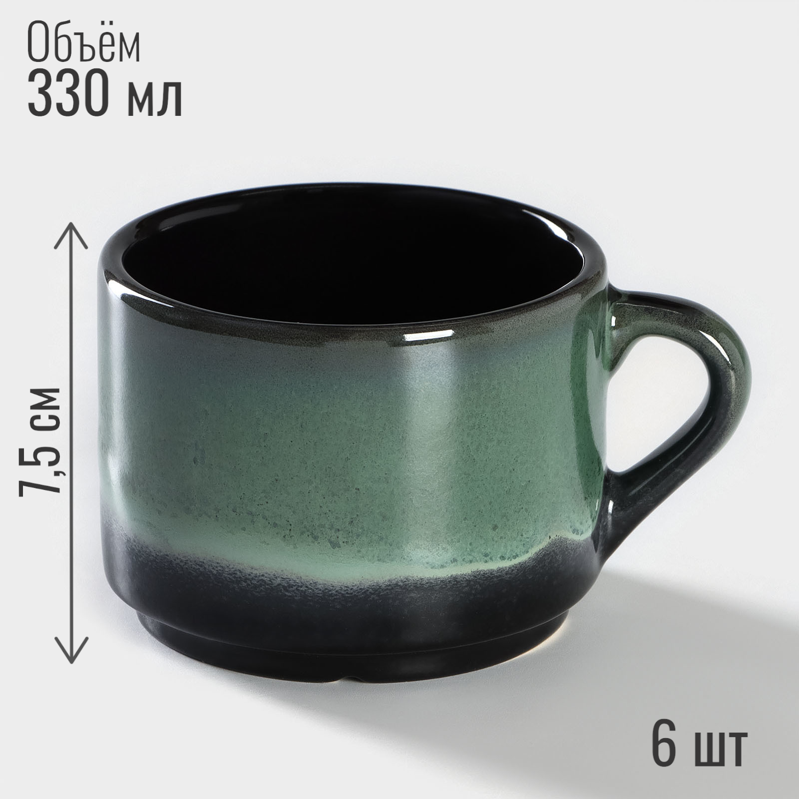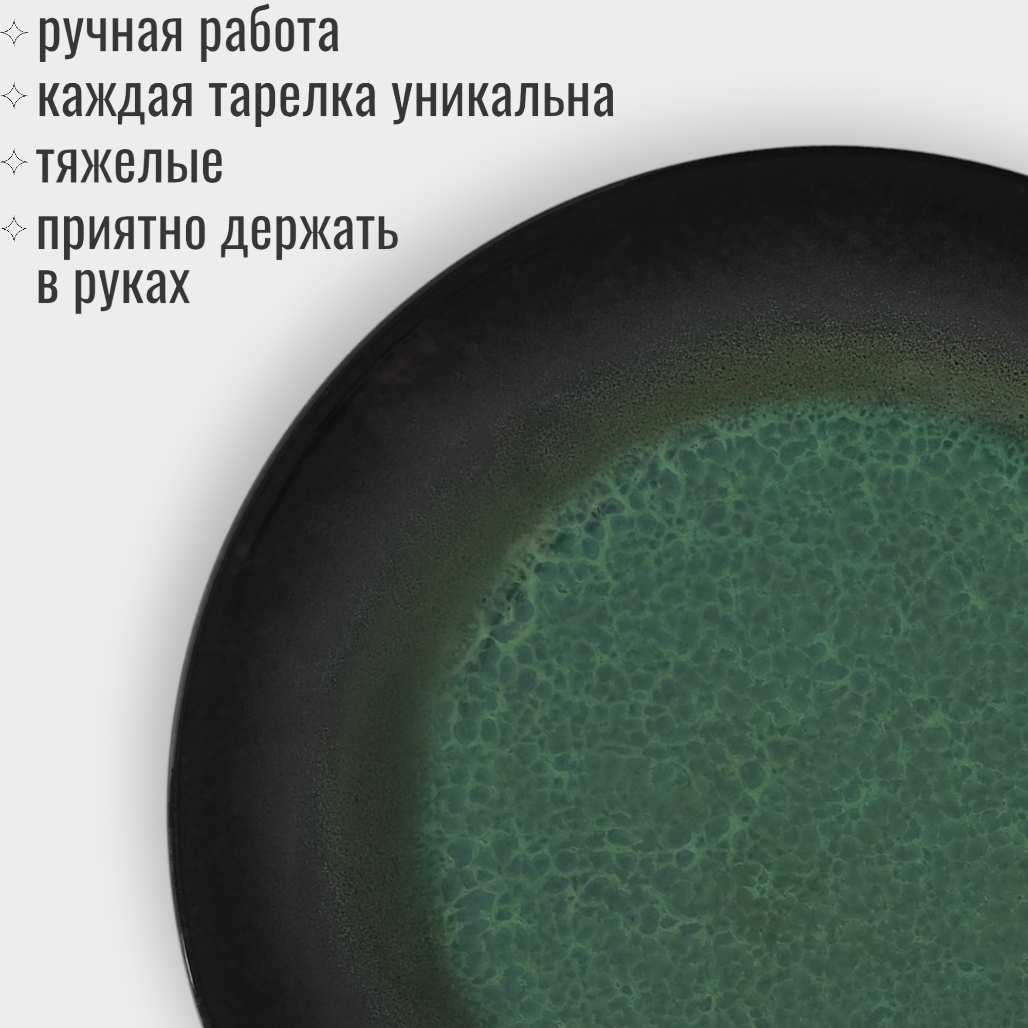 Набор посуды столовой на 4 персоны с кружками, 16 предметов "Верде-Ноте", фарфор, сервиз обеденный темно-зеленый