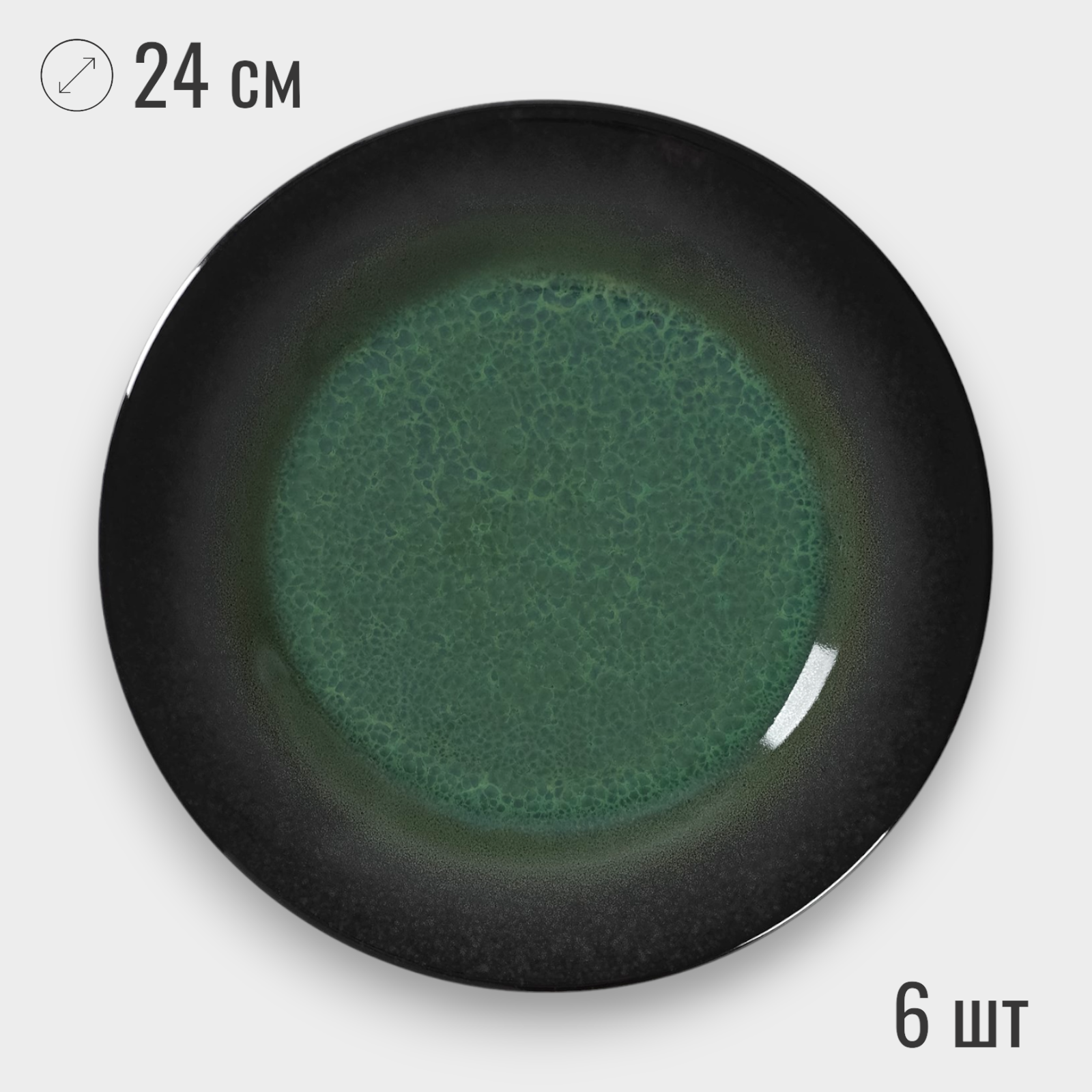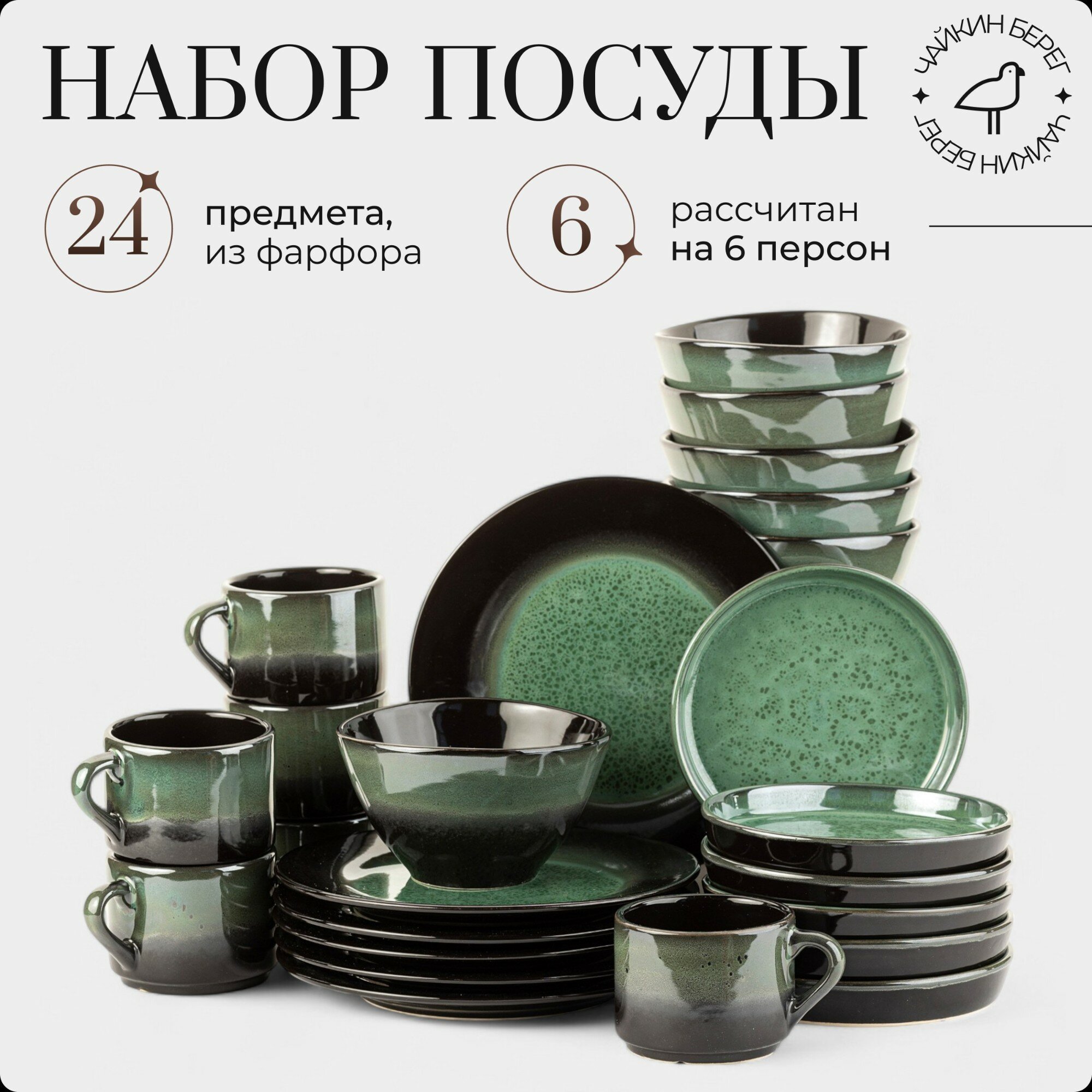 Набор посуды столовой на 6 персон с кружками, 24 предмета "Эрбосо Реаттиво", фарфор, сервиз обеденный зеленый