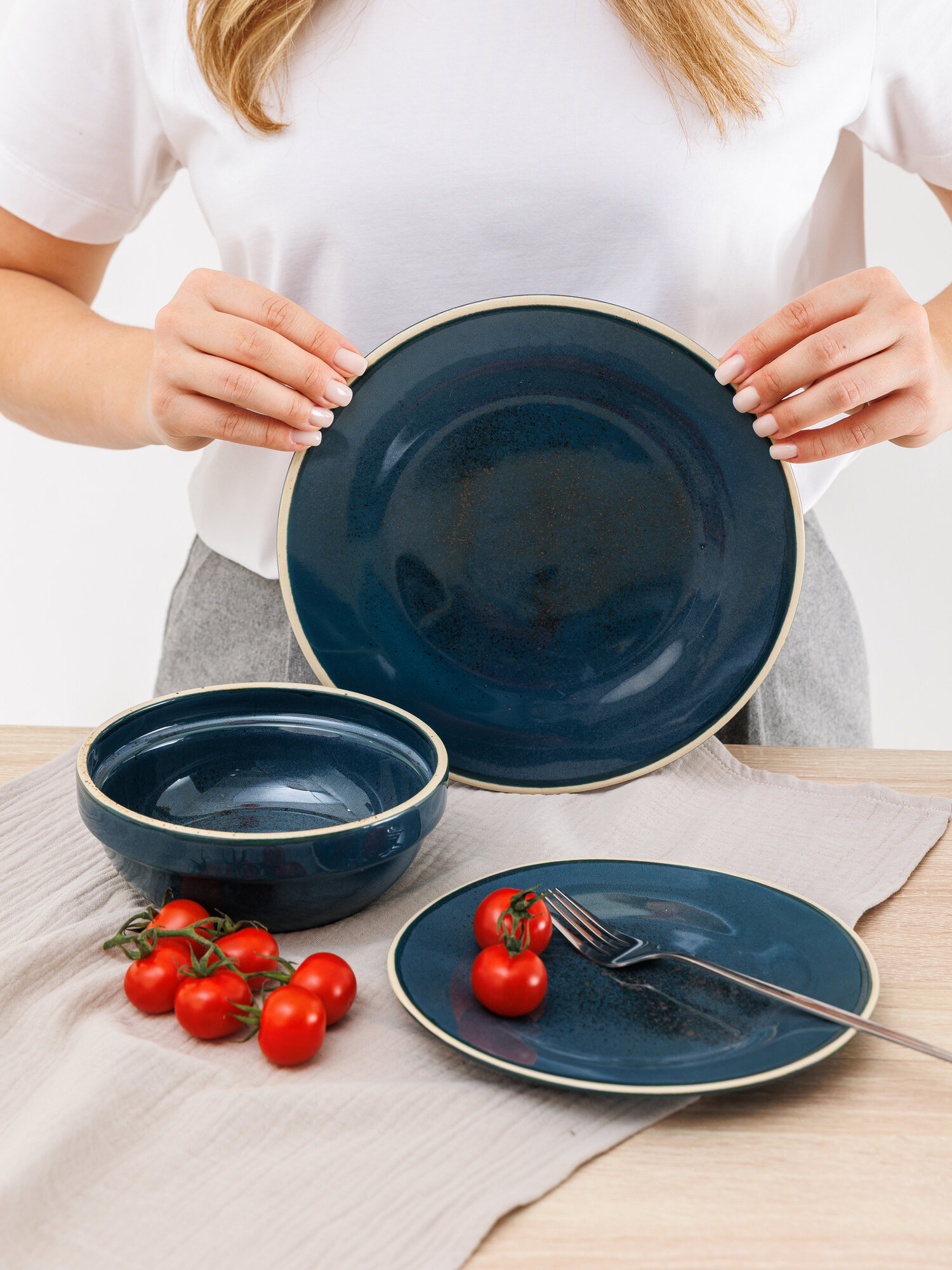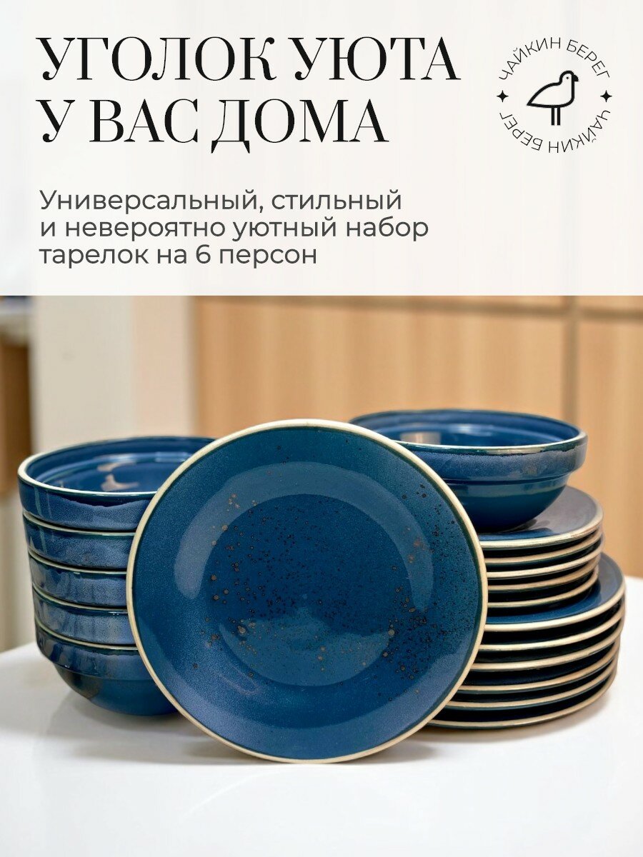Сервиз обеденный на 6 персон, 18 предметов "Бордер", фарфор, набор посуды столовой Блу Реаттиво