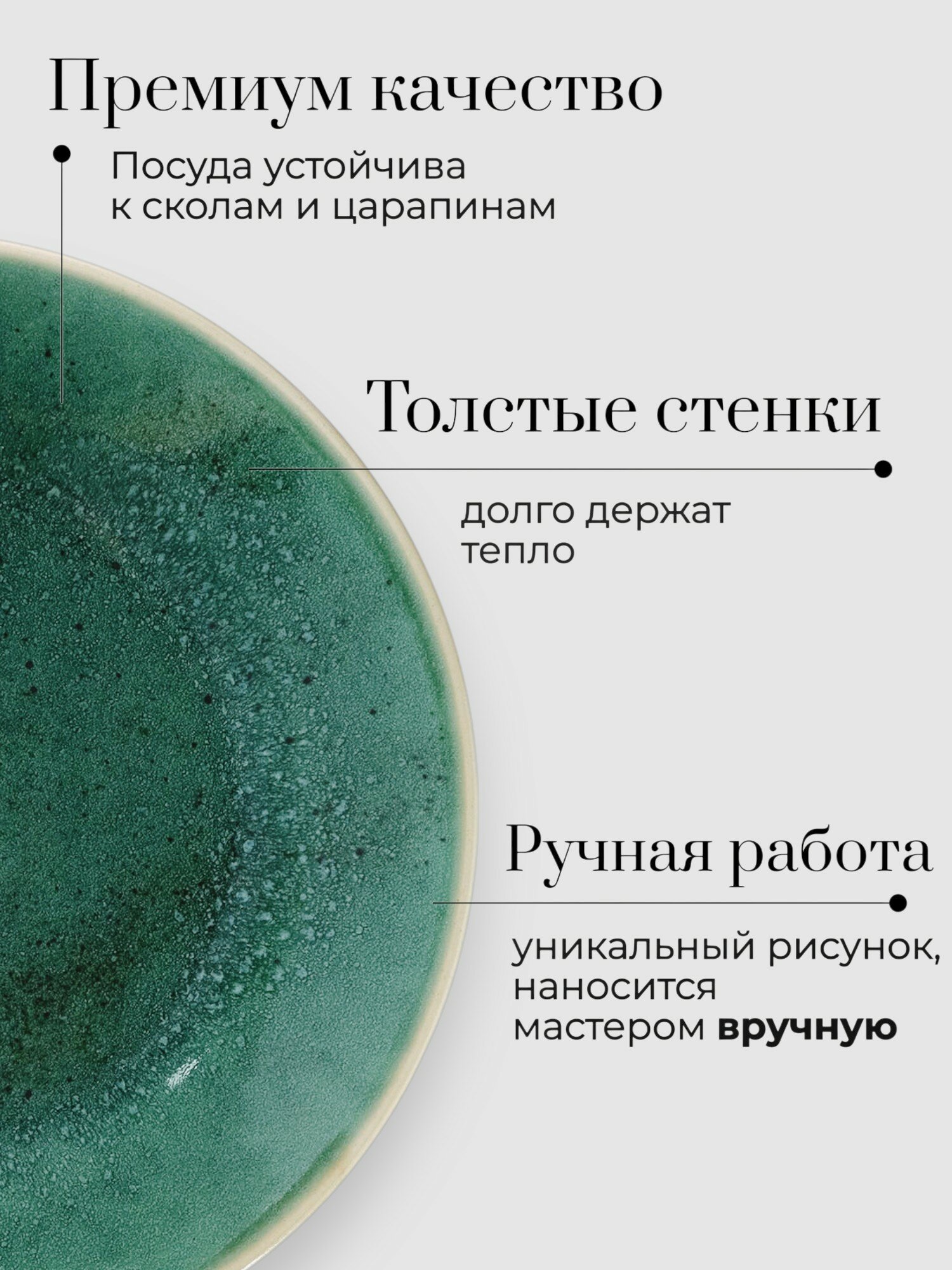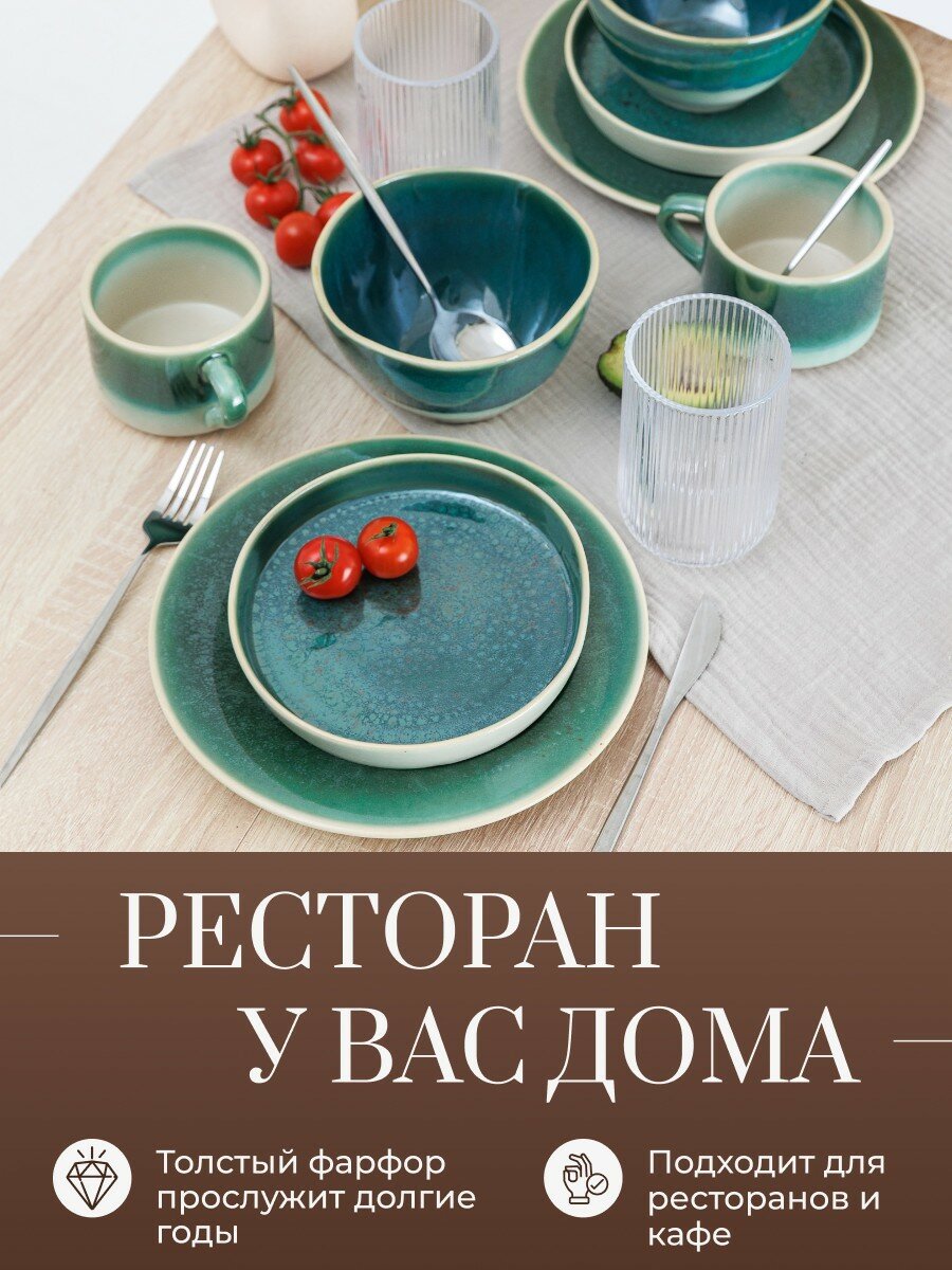 Набор посуды столовой на 4 персоны с кружками, 16 предметов "Верде-Ноте", фарфор, сервиз обеденный темно-зеленый