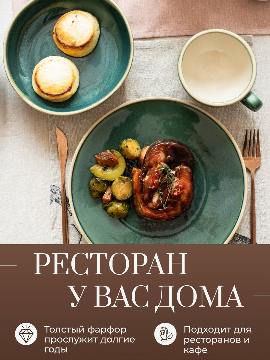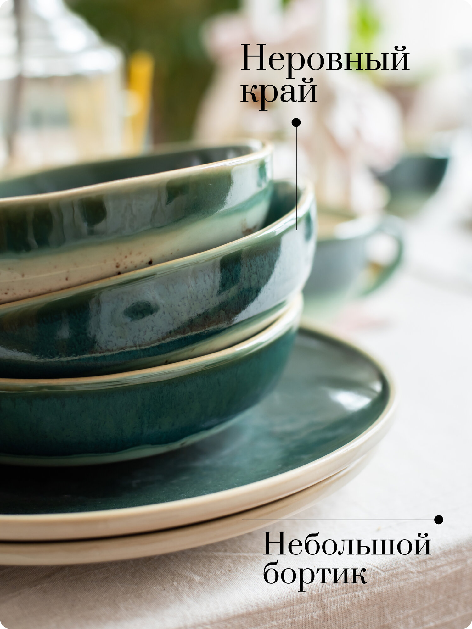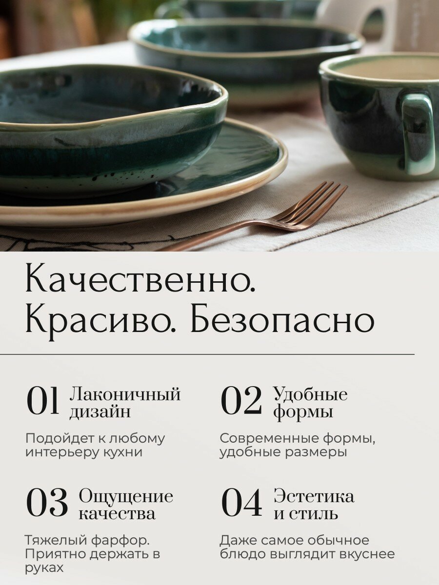 Набор посуды столовой на 4 персоны с кружками, 16 предметов "Верде-Ноте", фарфор, сервиз обеденный темно-зеленый