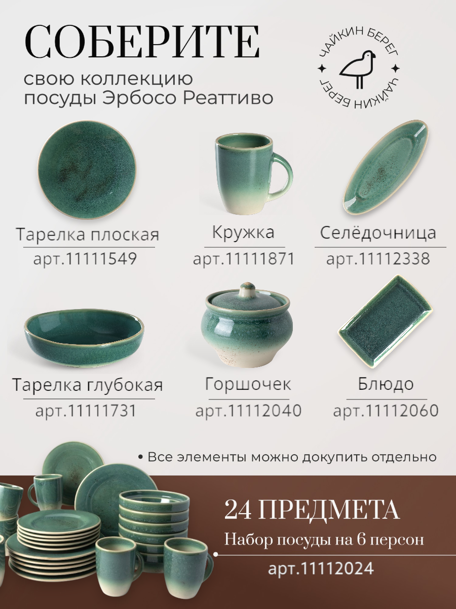 Набор посуды столовой на 6 персон с кружками, 24 предмета "Эрбосо Реаттиво", фарфор, сервиз обеденный зеленый
