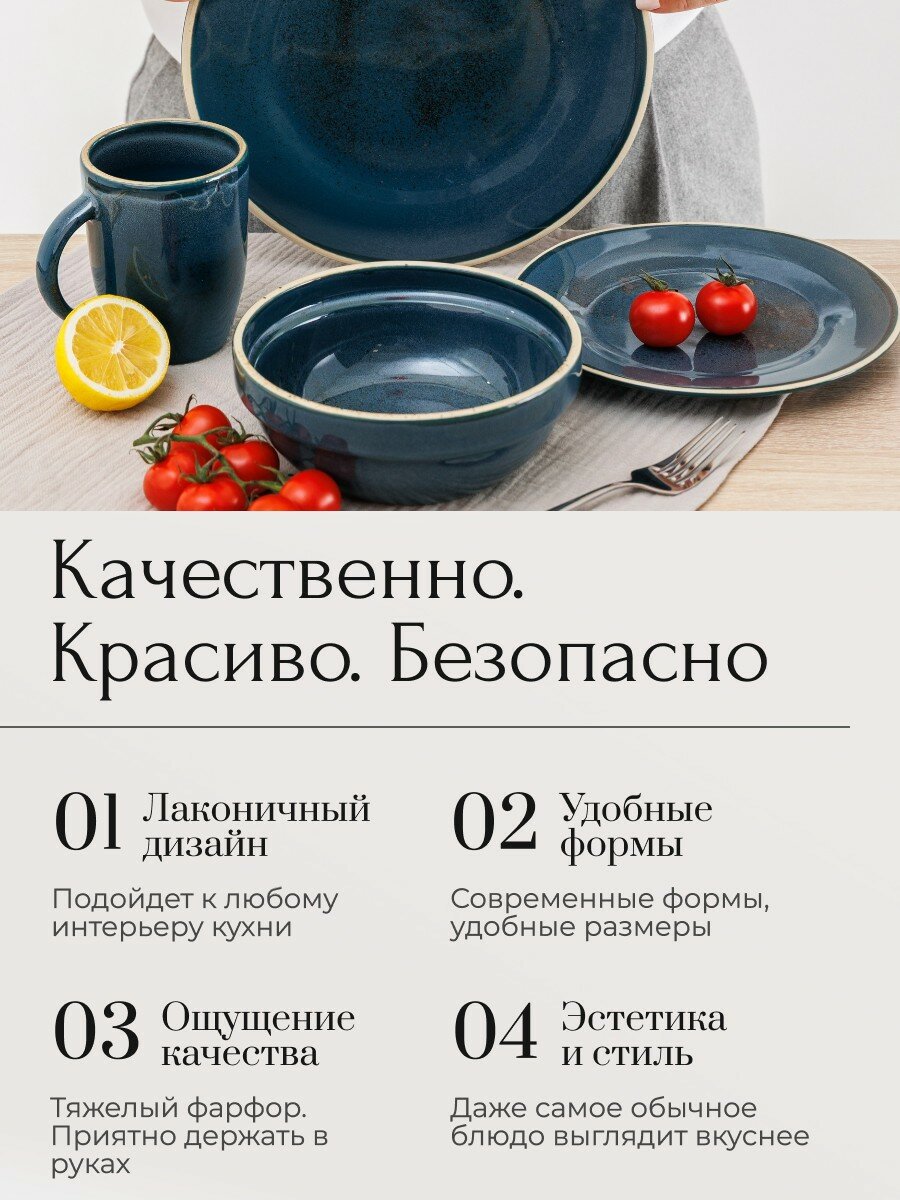Набор посуды столовой на 6 персон с кружками, 24 предмета "Бордер", фарфор, сервиз обеденный Блу Реаттиво