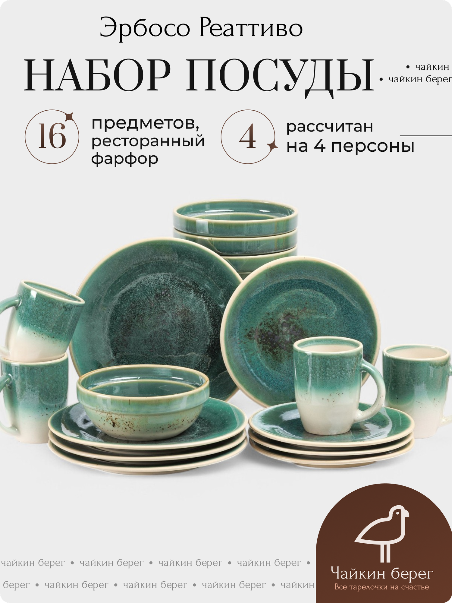Купить Набор тарелок и кружек на 4 персоны, 16 предметов Эрбосо Реаттиво
