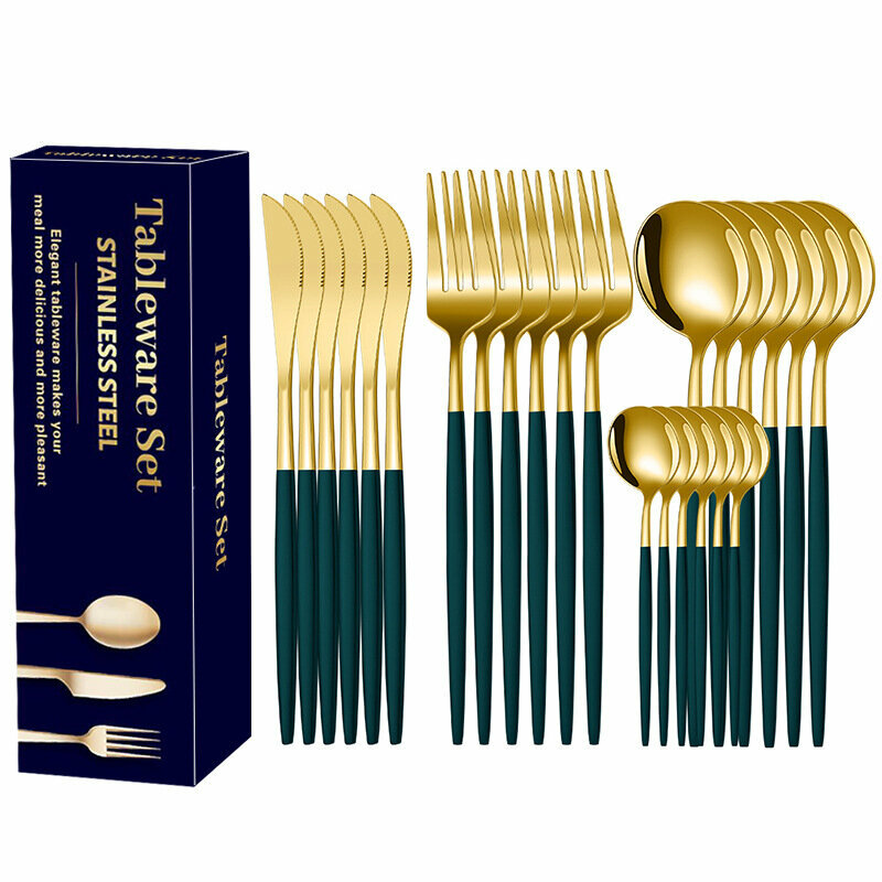 Набор посуды из нержавеющей стали 304 пробы (24 предмета) зеленое золото
