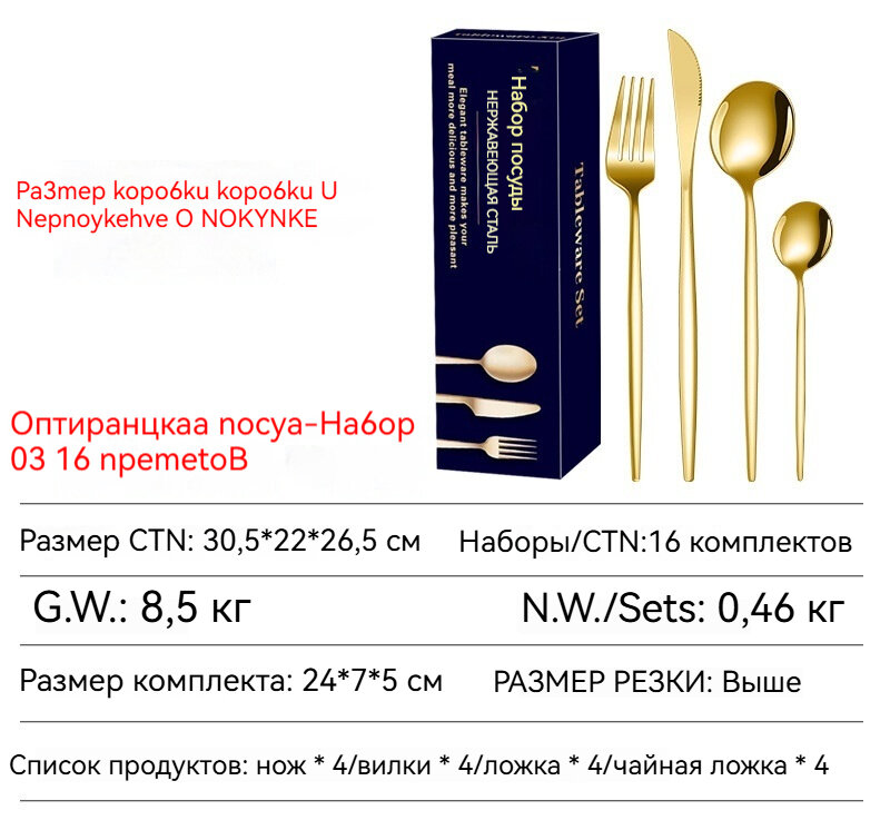 Ниже Вы можете прочитать отзывы на Набор посуды из нержавеющей стали 304 пробы (24 предмета) черное золото, ознакомится с подробными характеристиками, посмотреть интересные обзоры и фотографии на Набор посуды из нержавеющей стали 304 пробы (24 предмета) черное золото.