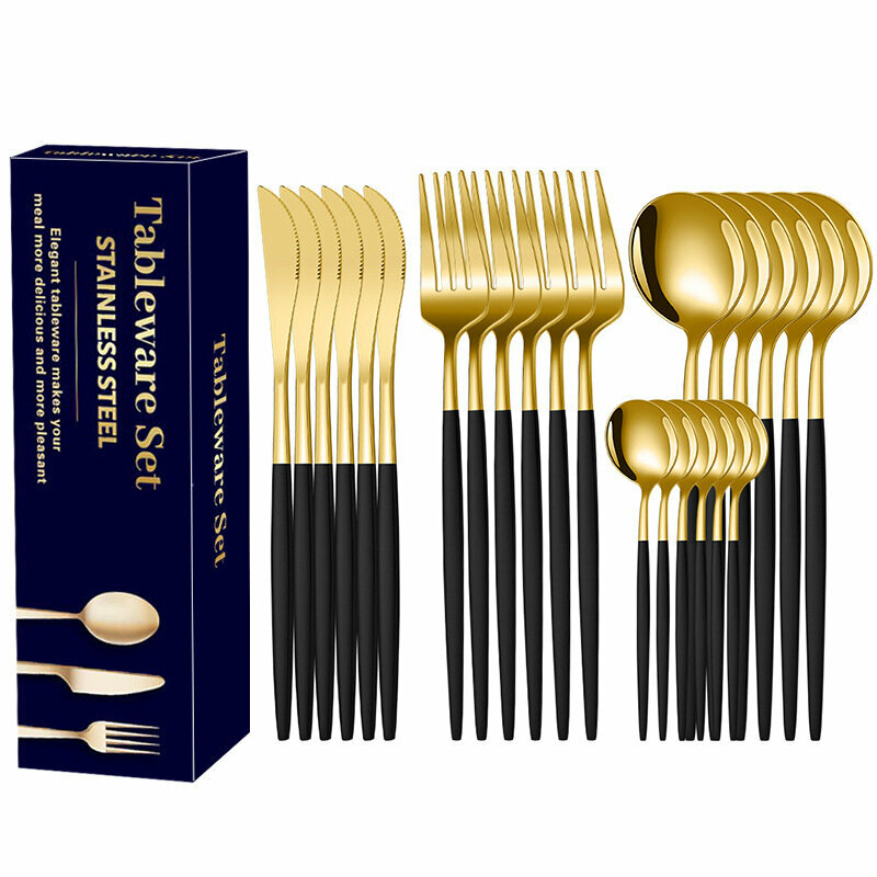 Купить Набор посуды из нержавеющей стали 304 пробы (24 предмета) черное золото