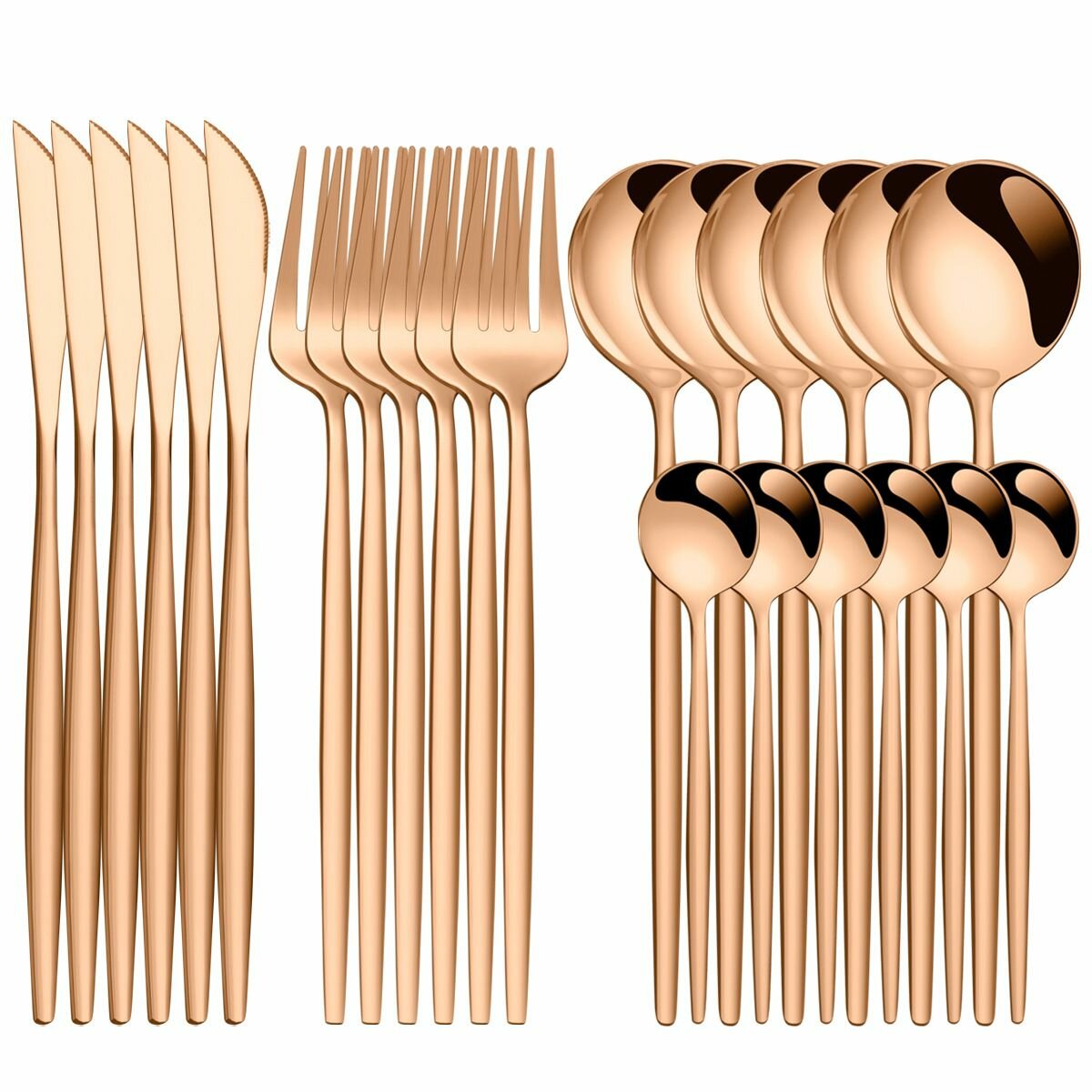 Набор посуды из нержавеющей стали 304 пробы (24 предмета) розовое золото