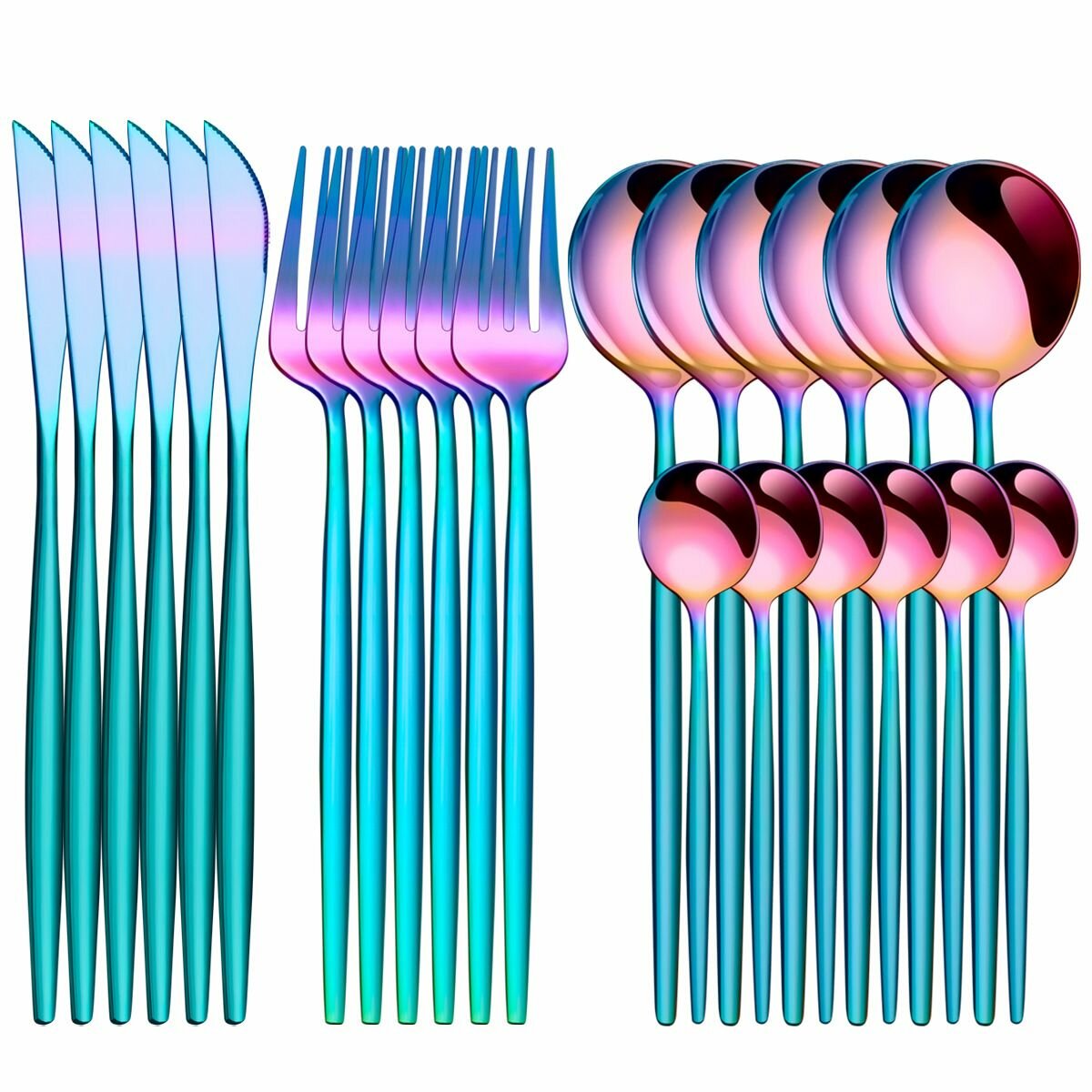 Набор посуды из нержавеющей стали 304 пробы (24 предмета) зеленое золото интересное: