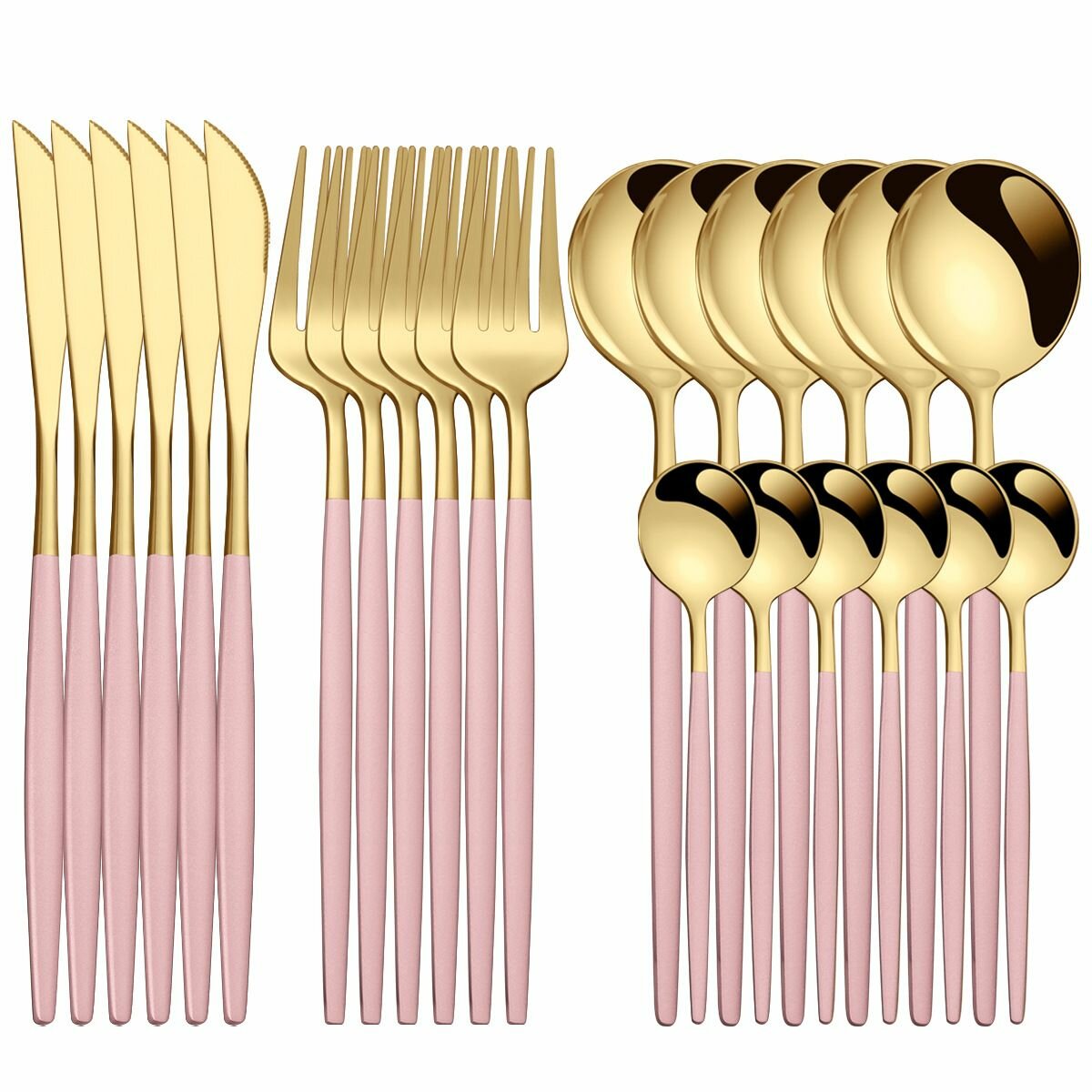 Набор посуды из нержавеющей стали 304 пробы (24 предмета) розовое золото