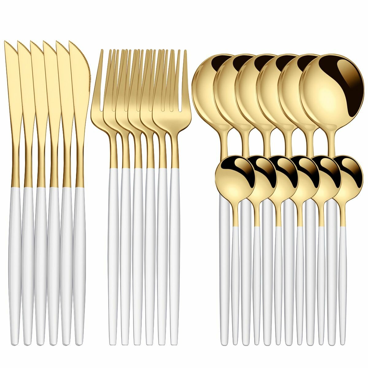 Набор посуды из нержавеющей стали 304 пробы (24 предмета) белое золото