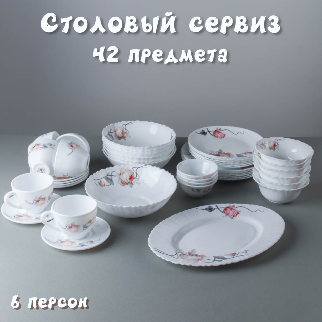 Столовый набор 42 предмета "Душистая роза" на 6 персон интересное: