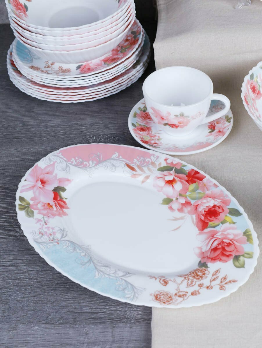 Набор столовой посуды 36 предметов "Розы на голубом", сервиз обеденный на 6 персон интересное: