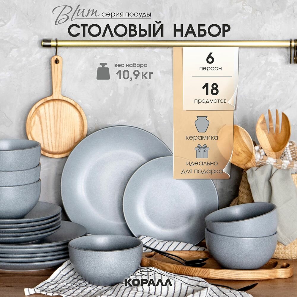 Набор посуды столовой на 6 персон 18 предметов Blum столовый сервиз обеденный керамика c глубокими тарелками