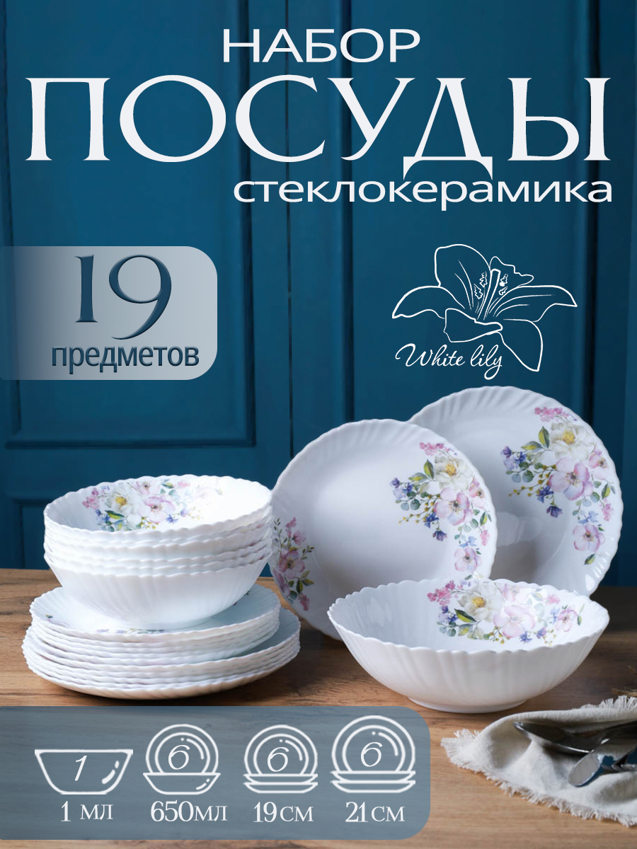 Купить Столовый сервиз WHITE LILY «Шиповник», стеклокерамика, 19 элементов