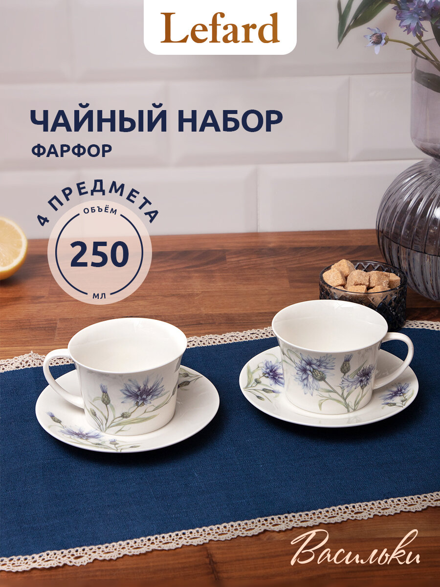 Сервиз Lefard "Васильки", чайный, на 2 персоны, 4 предмета, 330 мл, для чая и кофе, фарфоровый