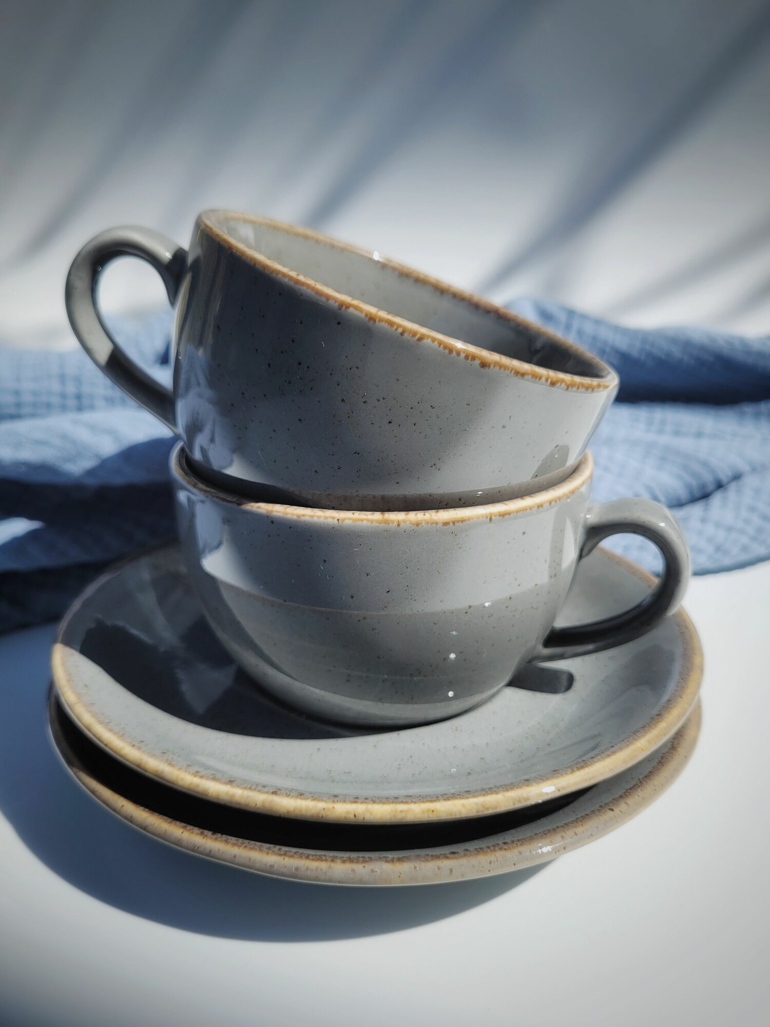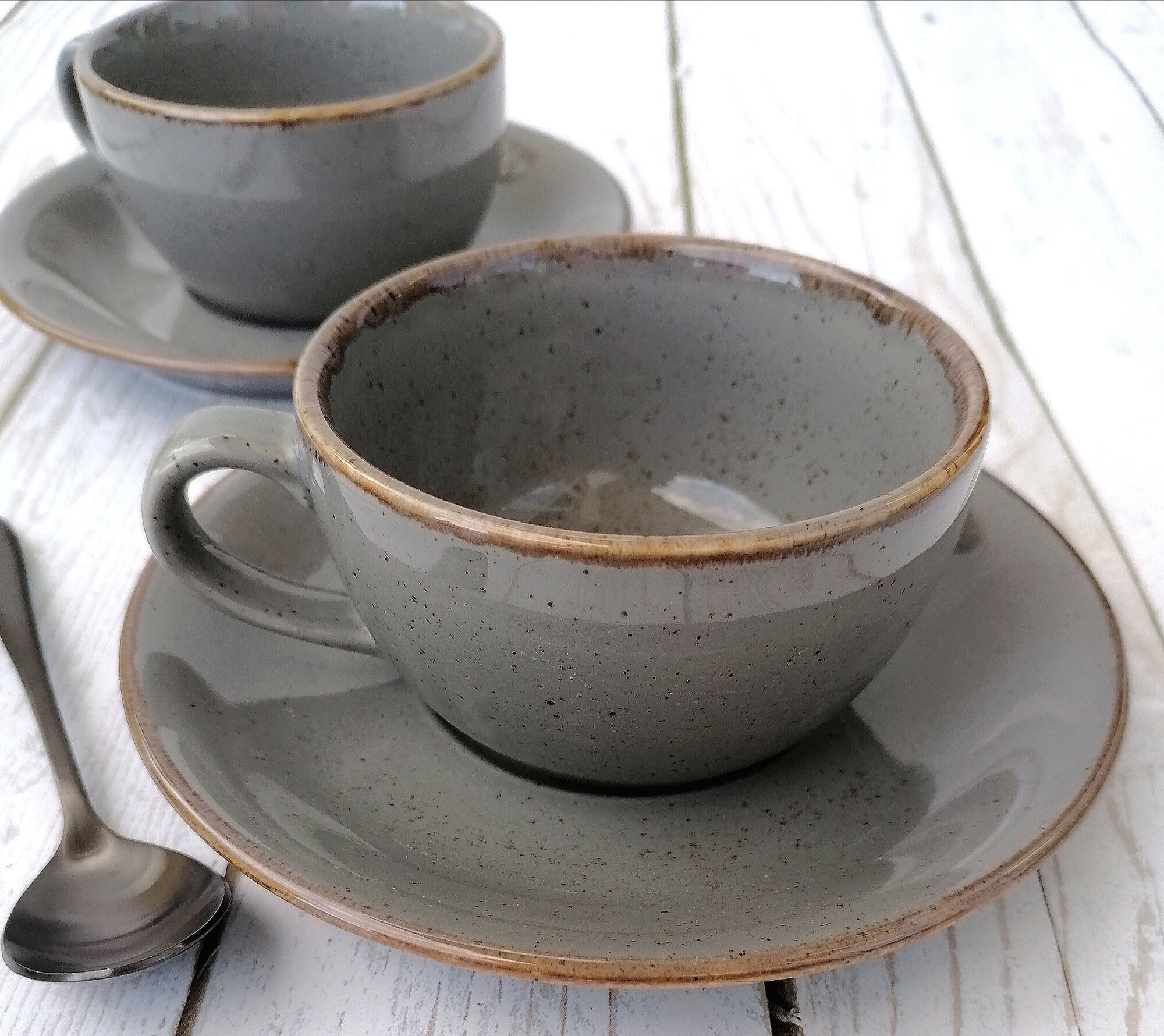 Набор чайные пары, кофейные светло-серые Porland "Seasons" 2 шт,250 мл. Ударопрочный, профессиональный фарфор. Для чая, кофе, капучино, латте.