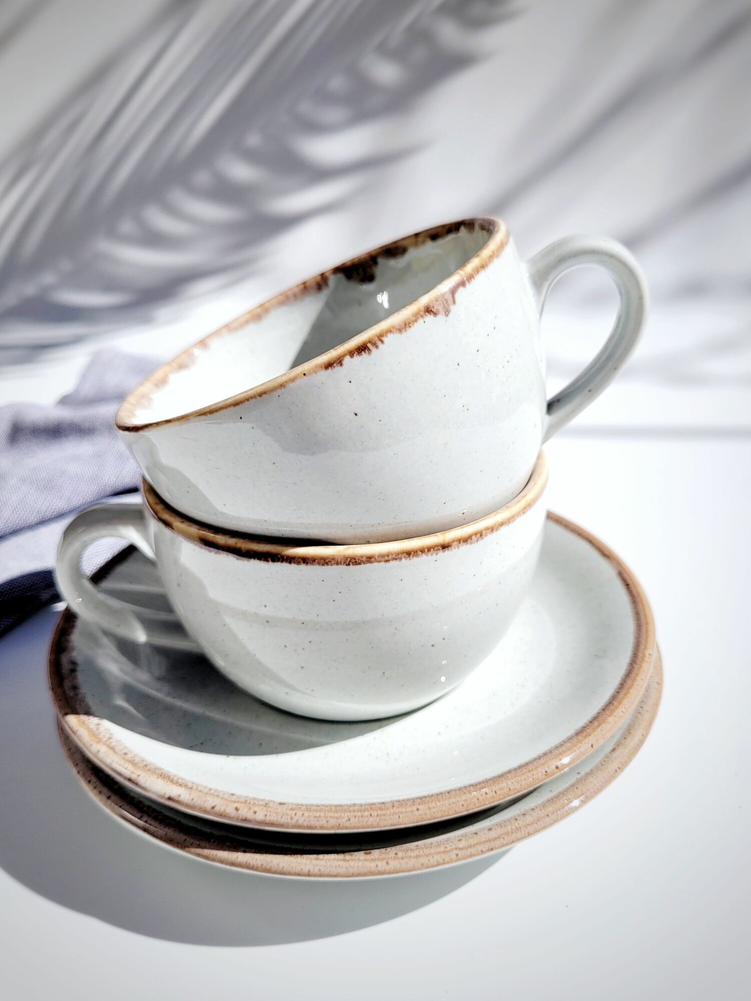 Набор чайные пары, кофейные бежевые Porland "Seasons" 2 шт,250 мл. Ударопрочный, профессиональный фарфор. Для чая, кофе, капучино, латте.